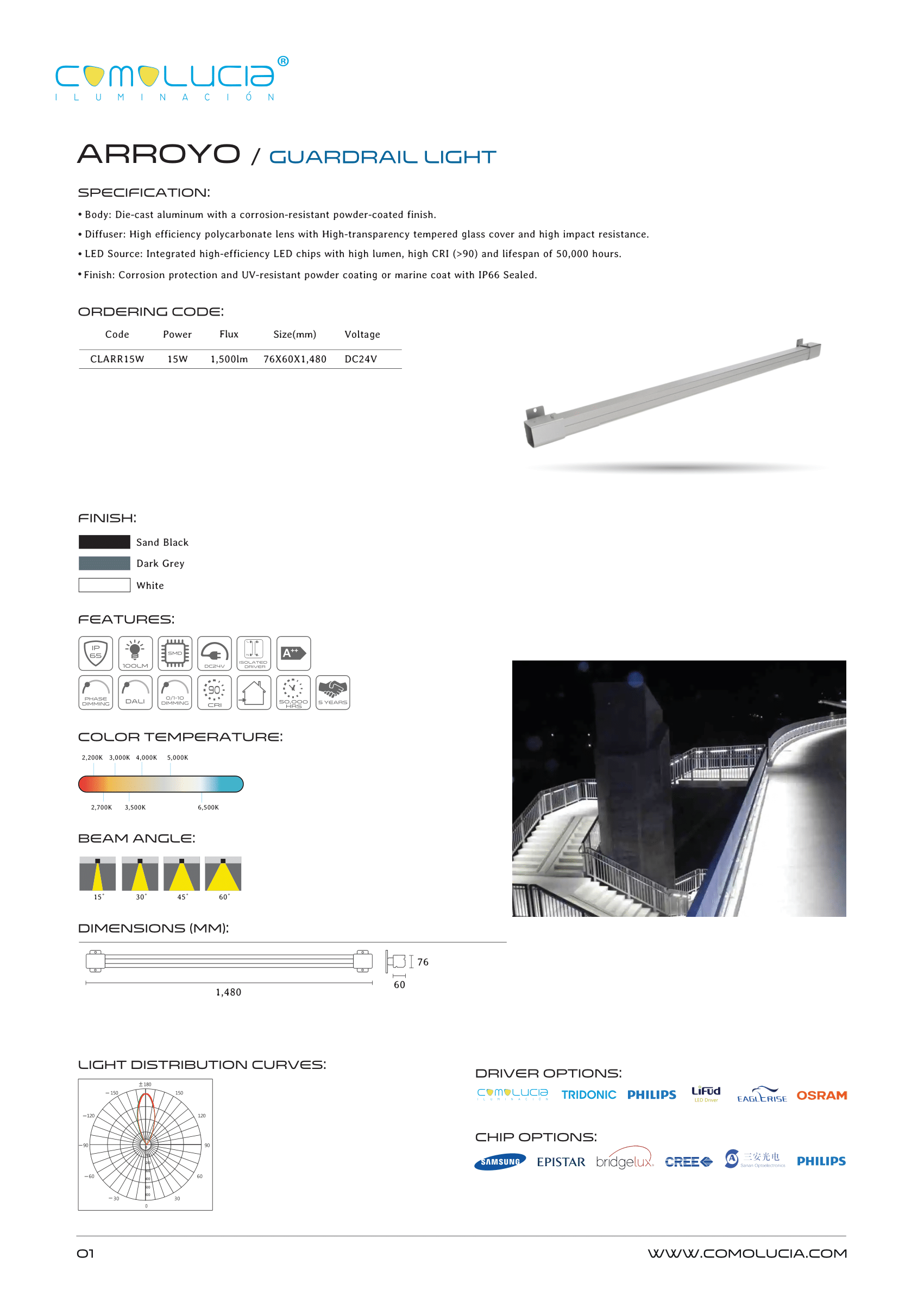 - LED Source: Integrated high-efficiency LED chips with high lumen, high CRI (>90) and lifespan of 50,000 hours.