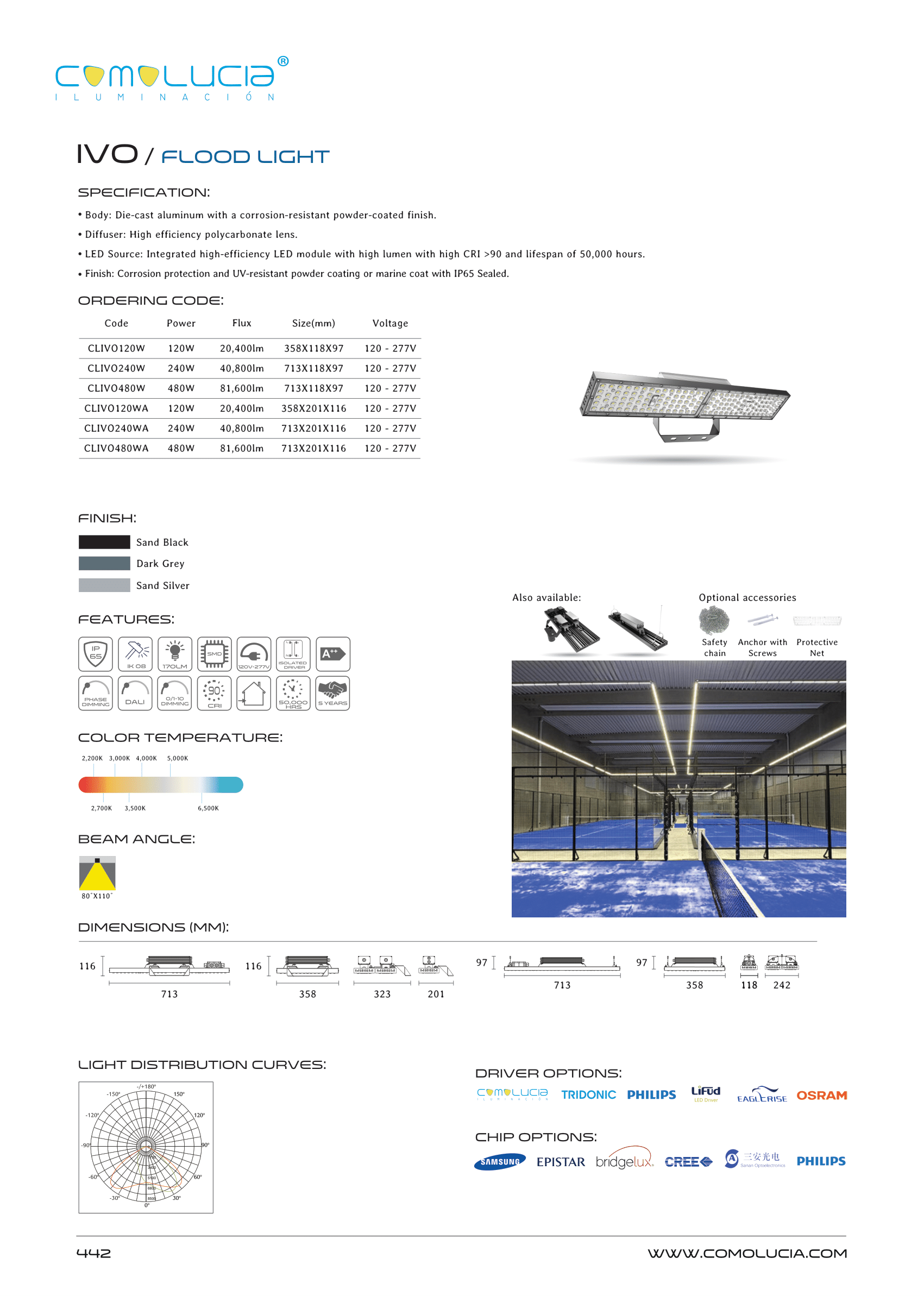 - Finish: Corrosion protection and UV-resistant powder coating or marine coat with IP65 Sealed.