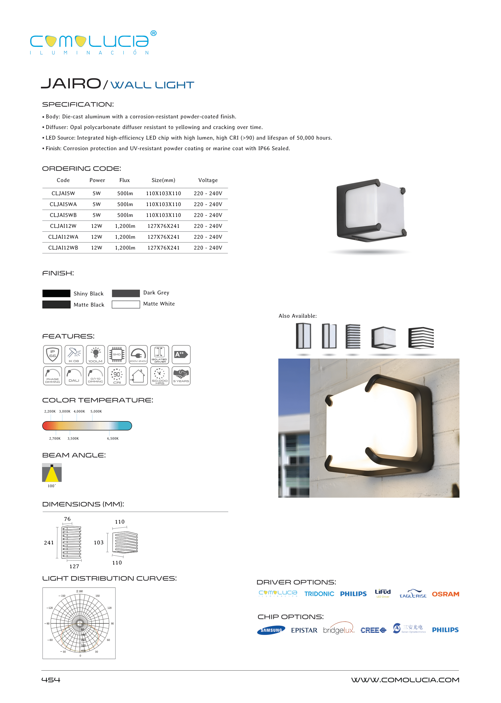 - Finish: Corrosion protection and UV-resistant powder coating or marine coat with IP66 Sealed.