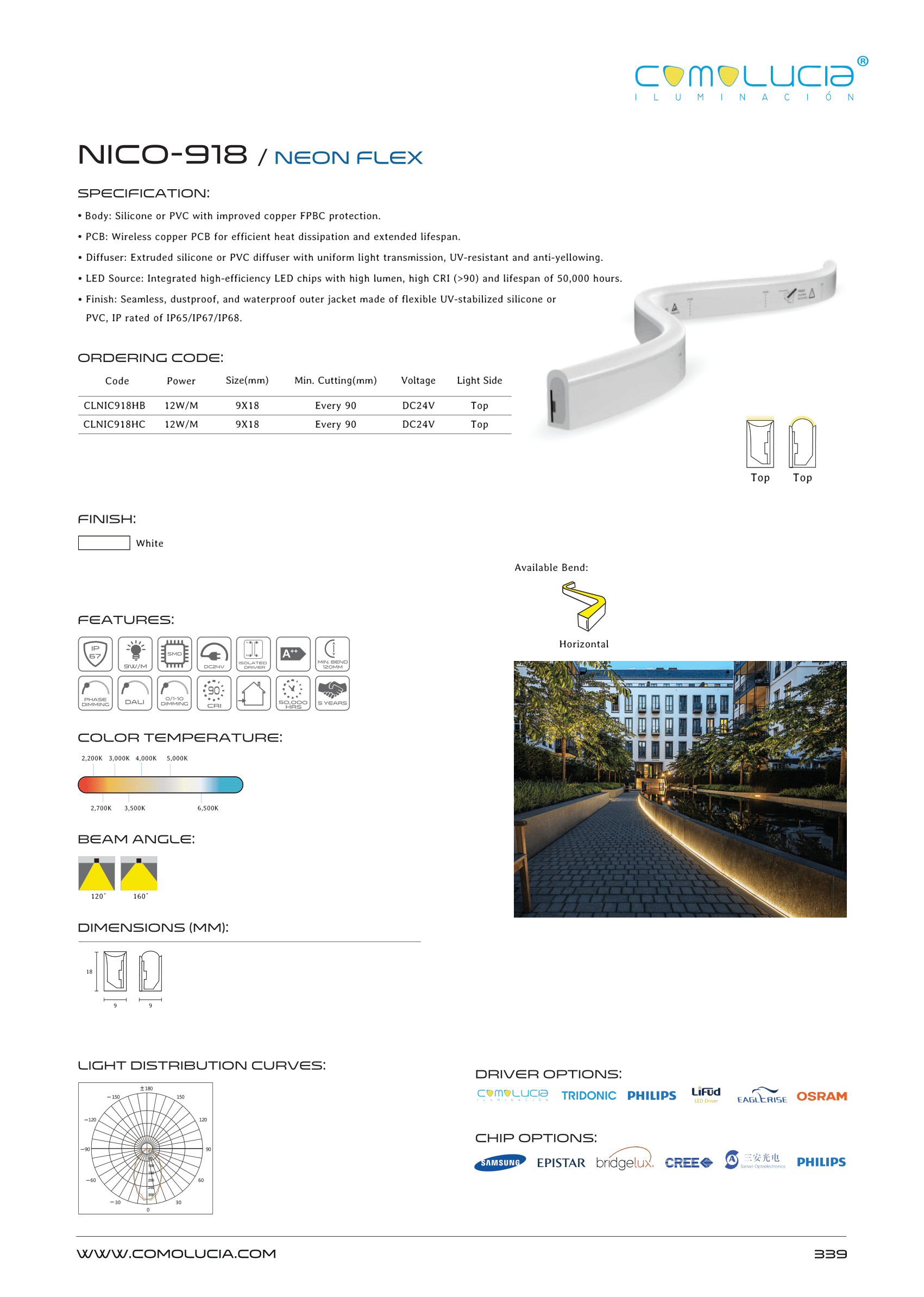 - LED Source: Integrated high-efficiency LED chips with high lumen, high CRI (>90) and lifespan of 50,000 hours.