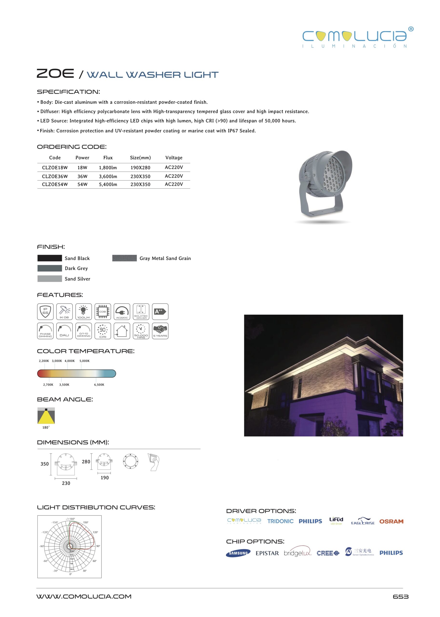 - Diffuser: High efficiency polycarbonate lens with High-transparency tempered glass cover and high impact resistance.