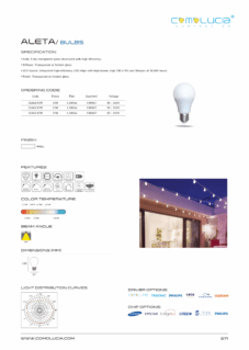 Body: Polycarbonate with internal aluminum heat dissipation structured. Diffuser: High efficiency polycarbonate lens. LED Source: Integrated high-efficiency LED chips with high lumen, high CRI (>90) and lifespan of 50,000 hours. Finish: Powder coated in various color.