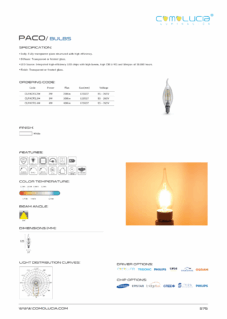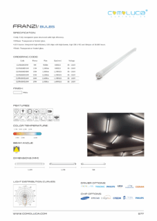 Body: Fully transparent glass structured with high efficiency. Diffuser: Transparent or frosted glass. LED Source: Integrated high-efficiency LED chips with high lumen, high CRI (>90) and lifespan of 50,000 hours. Finish: Transparent or frosted glass.