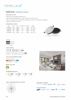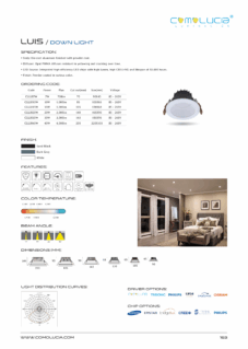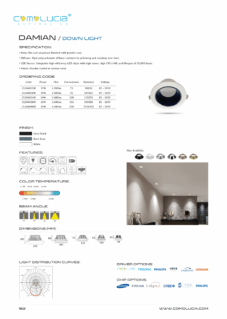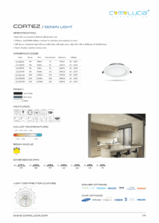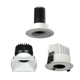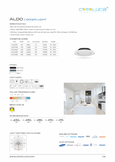 Body: Die-cast aluminum finished with powder coat. Diffuser: High efficiency anodized aluminum reflector with High-transparency tempered glass cover. LED Source: Integrated high-efficiency LED chips with high lumen, high CRI (>90) and lifespan of 50,000 hours. Finish: Powder coated in various color.