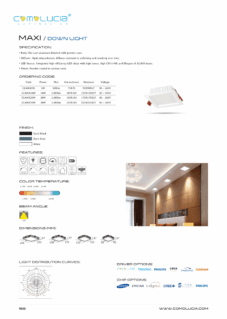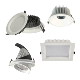 Body: Die-cast aluminum finished with powder coat. Diffuser: Diffuser: High efficiency anodized aluminum reflector with High-transparency tempered glass. LED Source: Integrated high-efficiency LED chips with high lumen, high CRI (>90) and lifespan of 50,000 hours. Finish: Powder coated in various color.