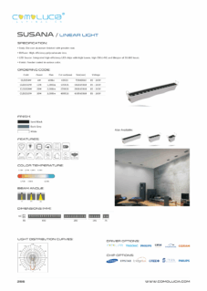 Body: Die-cast aluminum finished with powder-coat. Diffuser: High efficiency polycarbonate lens. LED Source: Integrated high-efficiency LED chips with high lumen, high CRI (>90) and lifespan of 50,000 hours. Finish: Powder coated in various color.