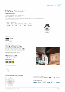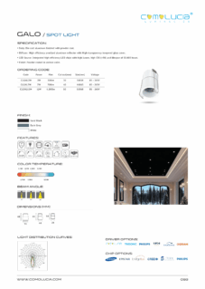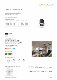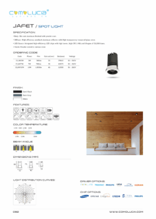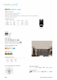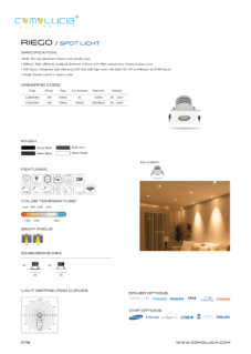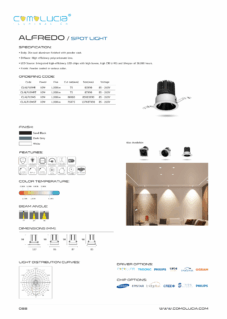 Body: Die-cast aluminum finished with powder-coat. Diffuser: High efficiency anodized aluminum reflector with High-transparency tempered glass cover. LED Source: Integrated high-efficiency LED chip with high lumen with high CRI >90 and lifespan of 50,000 hours. Finish: Powder coated in various color.