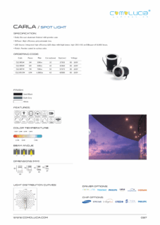 Body: Die-cast aluminum finished with powder-coat. Diffuser: High efficiency polycarbonate lens. LED Source: Integrated high-efficiency LED chip with high lumen with high CRI >90 and lifespan of 50,000 hours. Finish: Powder coated in various color.