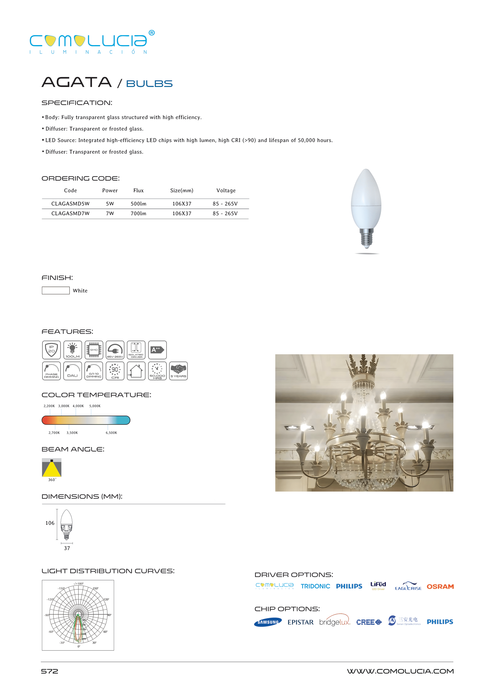 - LED Source: Integrated high-efficiency LED chips with high lumen, high CRI (>90) and lifespan of 50,000 hours.