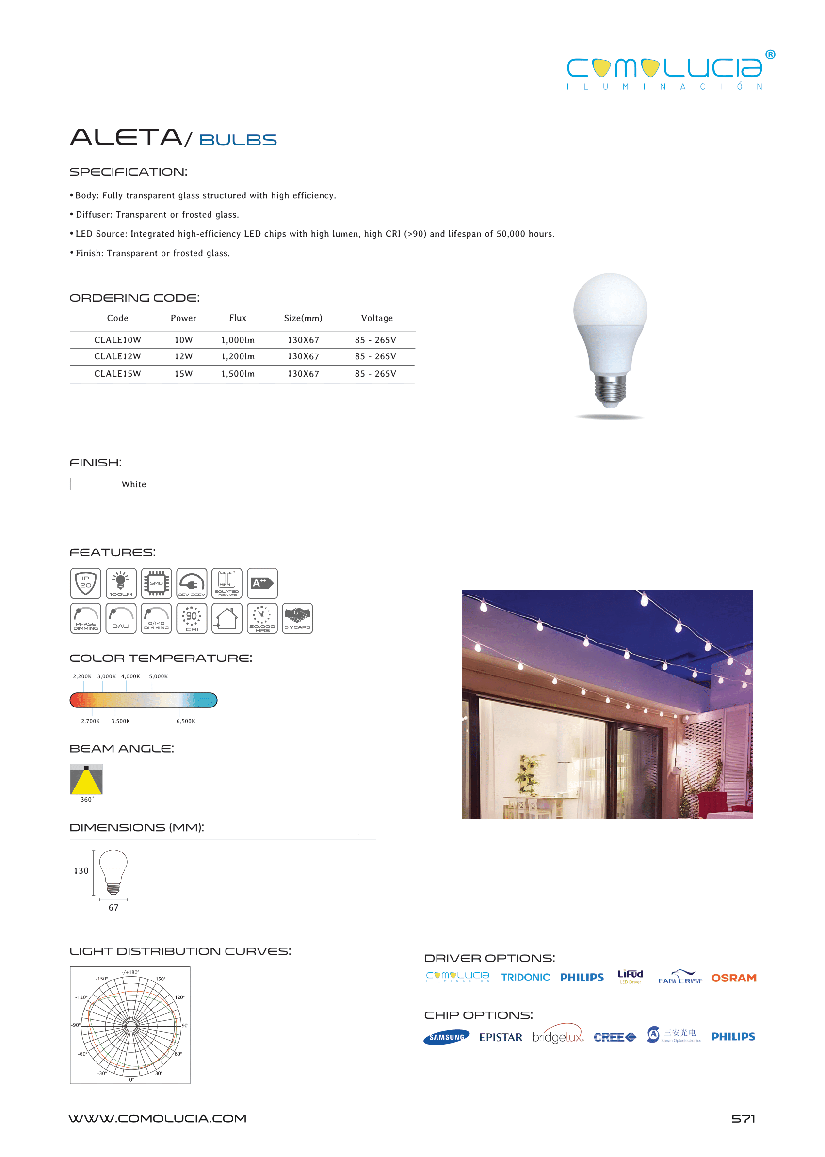 - LED Source: Integrated high-efficiency LED chips with high lumen, high CRI (>90) and lifespan of 50,000 hours.