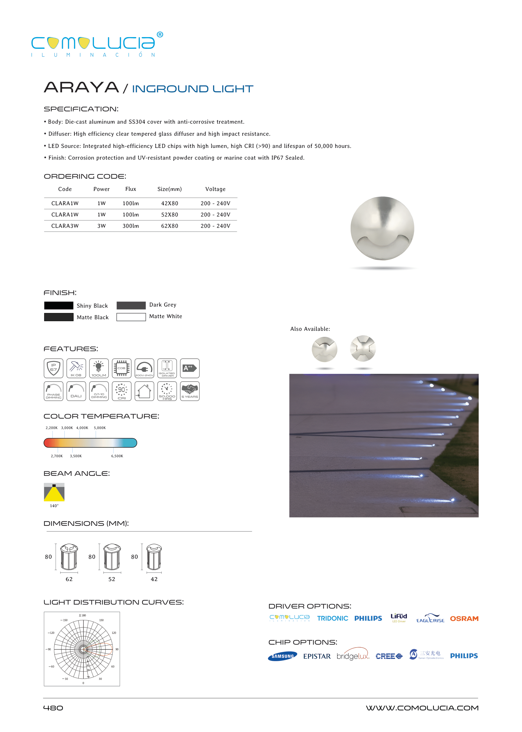 - Diffuser: High efficiency clear tempered glass diffuser and high impact resistance.