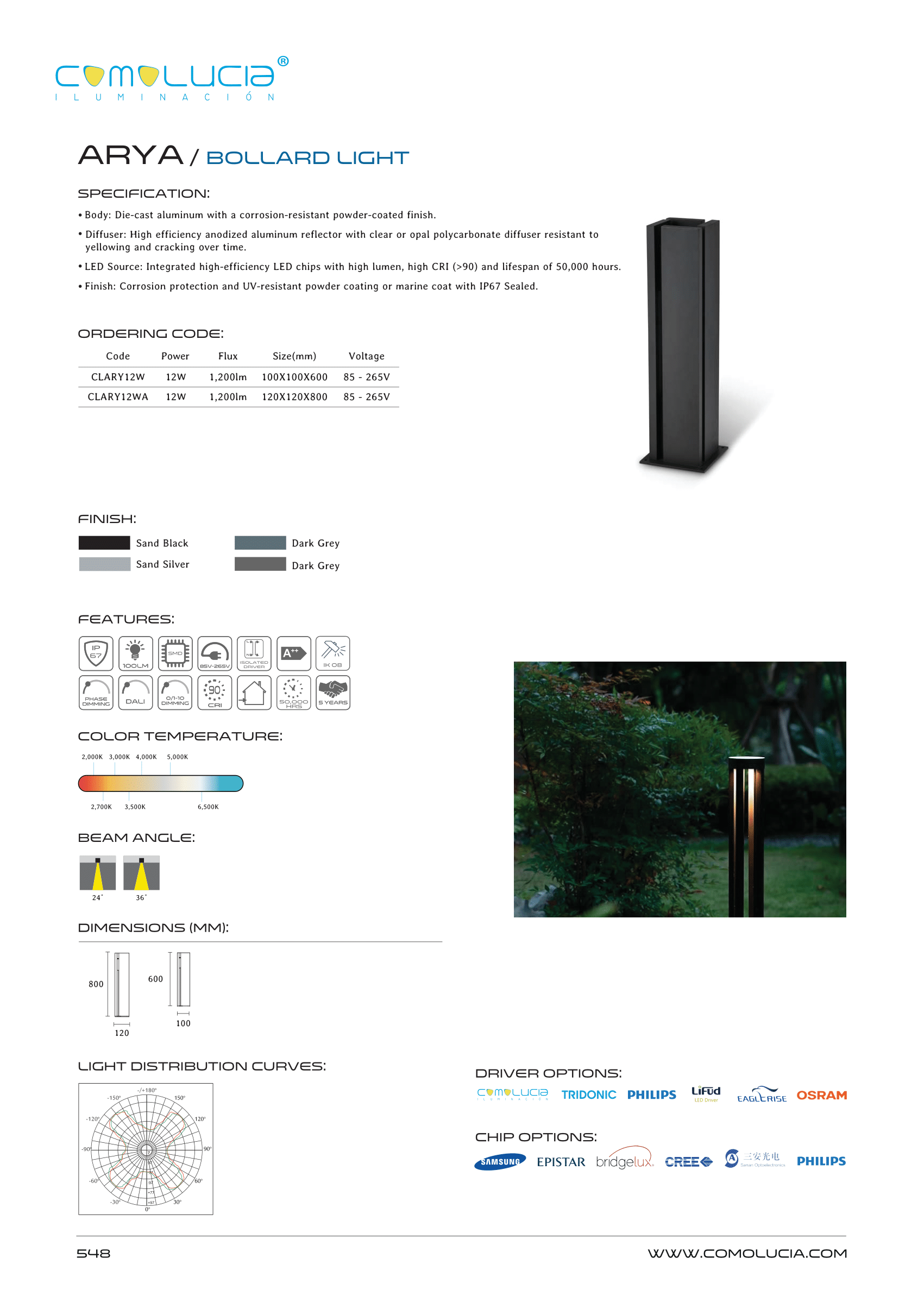 - LED Source: Integrated high-efficiency LED chips with high lumen, high CRI (>90) and lifespan of 50,000 hours.