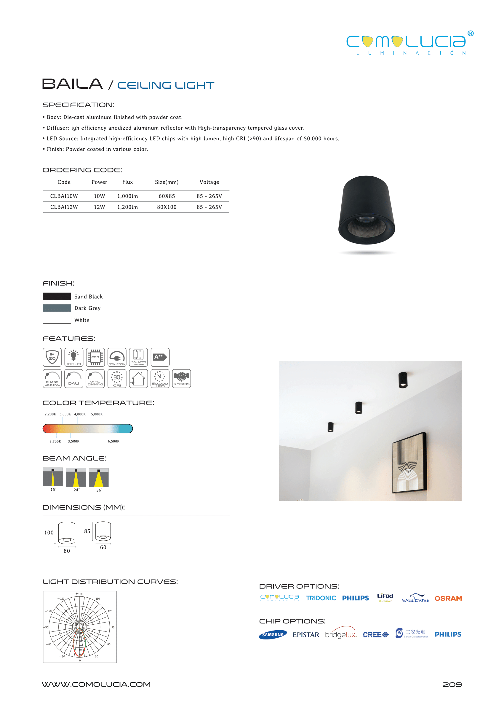 - Diffuser: igh efficiency anodized aluminum reflector with High-transparency tempered glass cover.