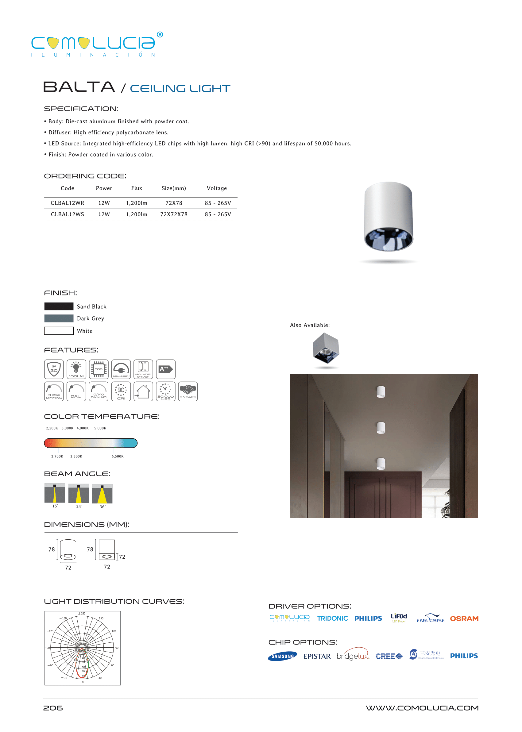- LED Source: Integrated high-efficiency LED chips with high lumen, high CRI (>90) and lifespan of 50,000 hours.