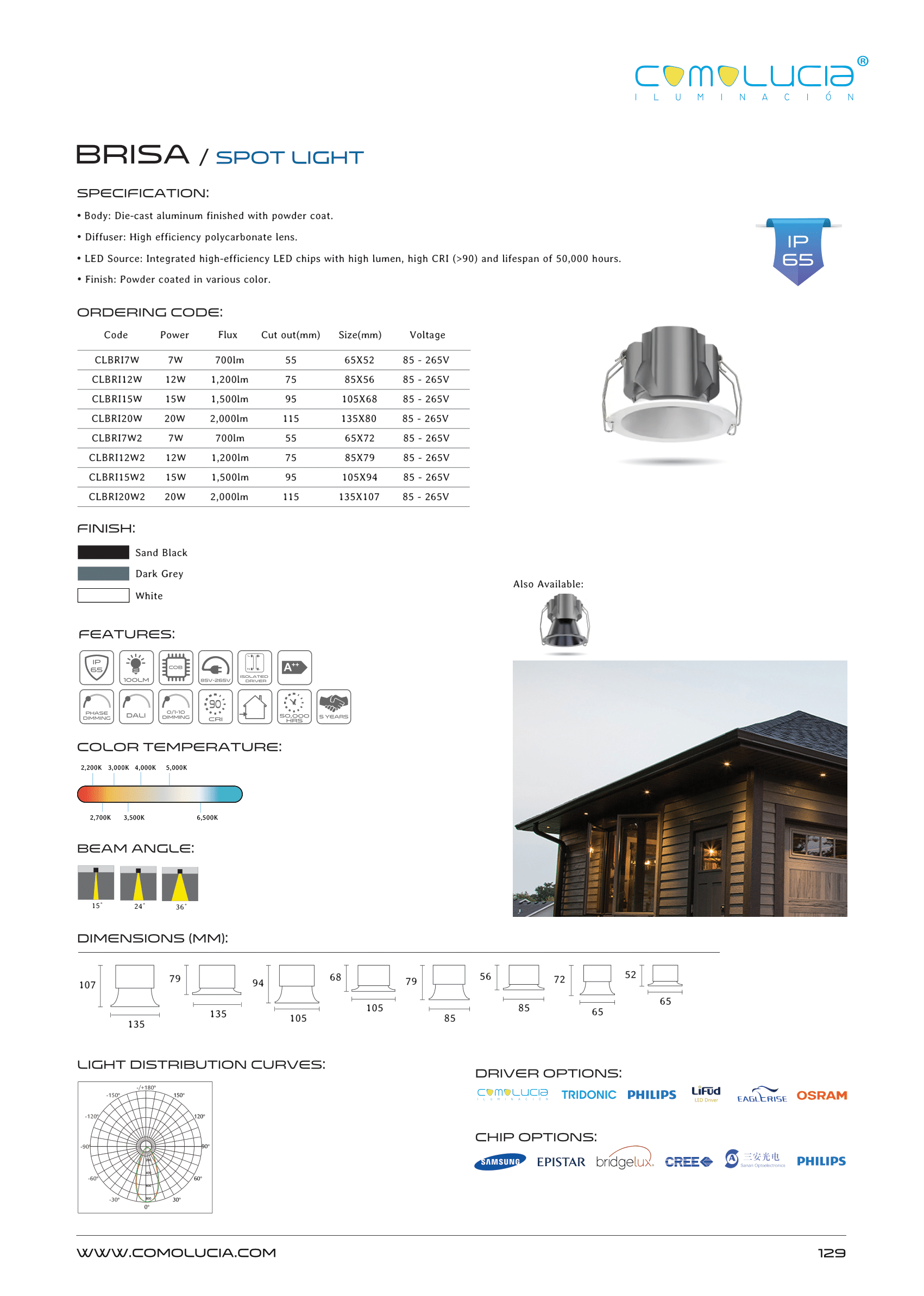 - LED Source: Integrated high-efficiency LED chips with high lumen, high CRI (>90) and lifespan of 50,000 hours.