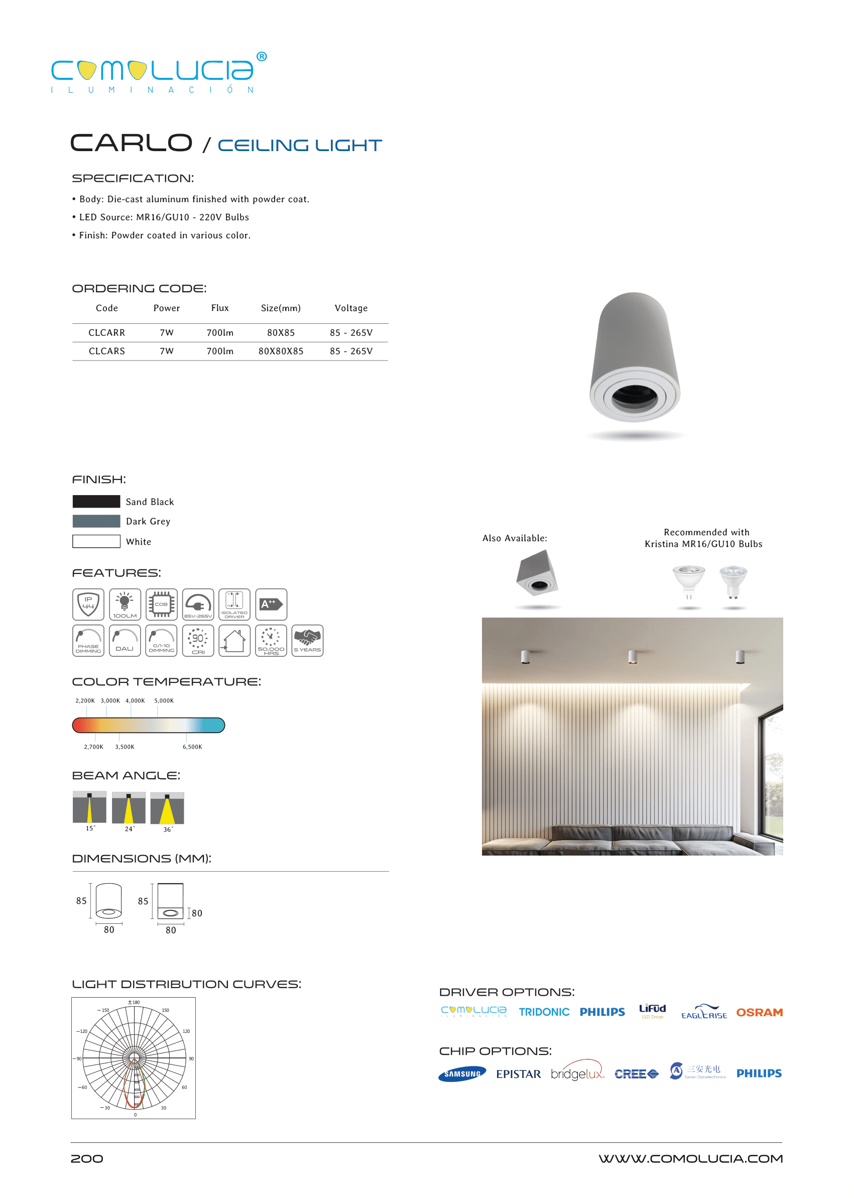 - LED Source: MR16/GU10 – 220V Bulbs