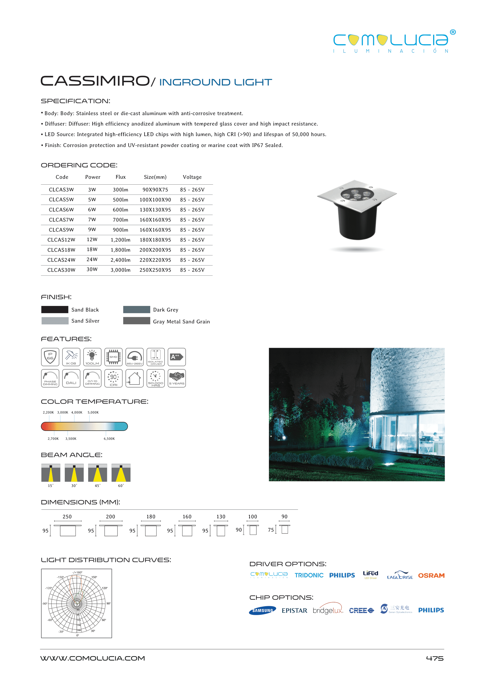 - LED Source: Integrated high-efficiency LED chips with high lumen, high CRI (>90) and lifespan of 50,000 hours.