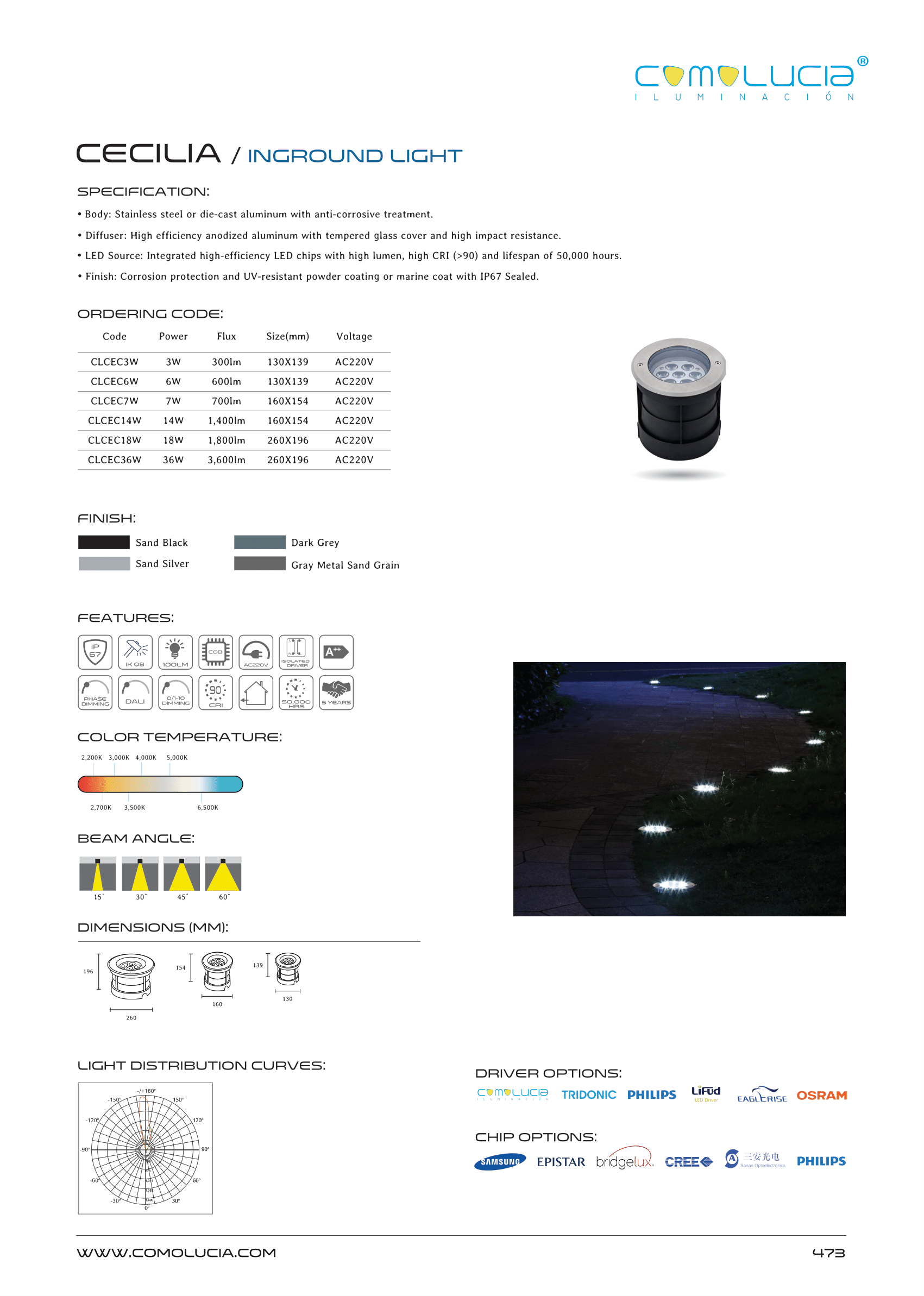 - LED Source: Integrated high-efficiency LED chips with high lumen, high CRI (>90) and lifespan of 50,000 hours.