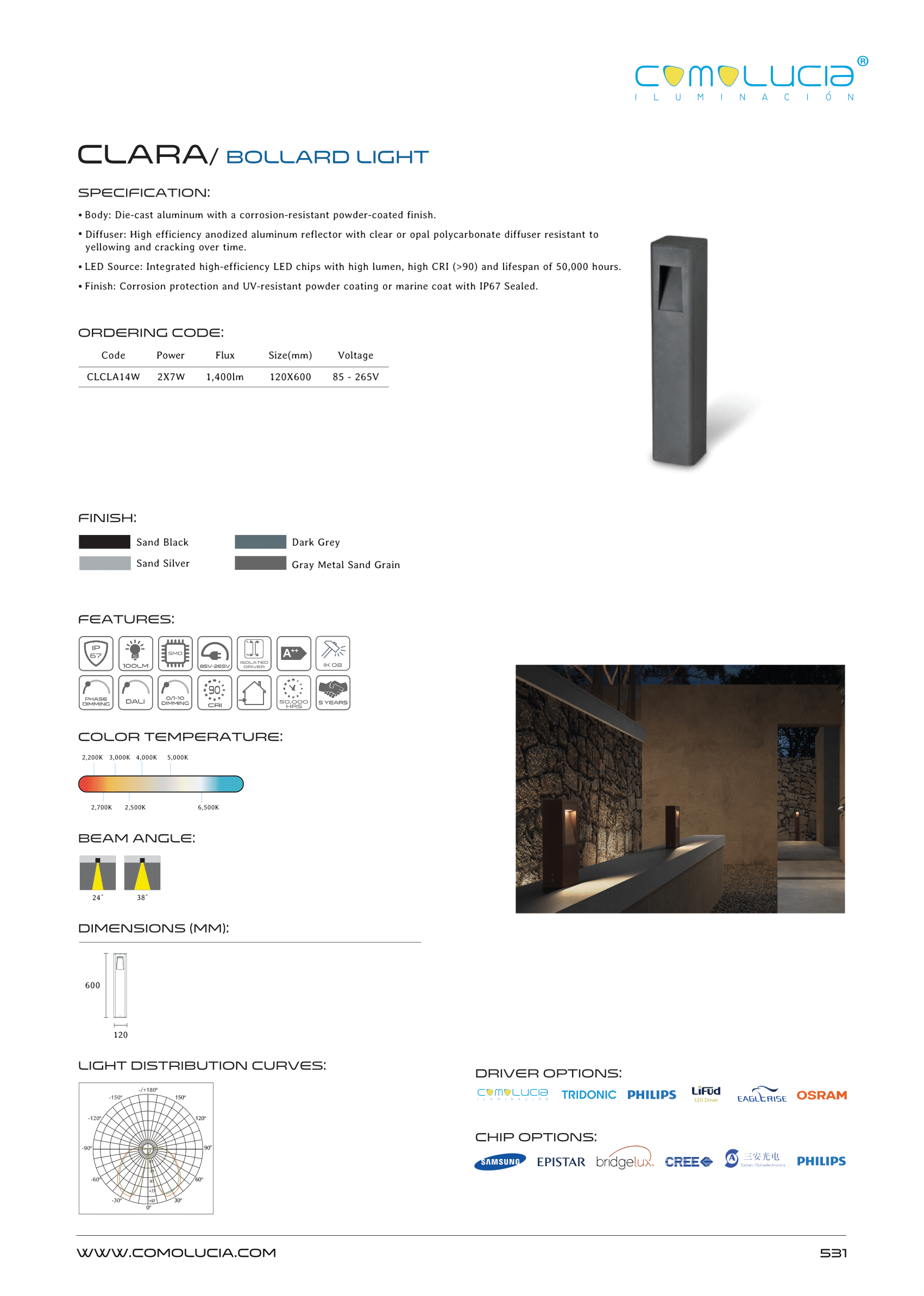 - LED Source: Integrated high-efficiency LED chips with high lumen, high CRI (>90) and lifespan of 50,000 hours.
