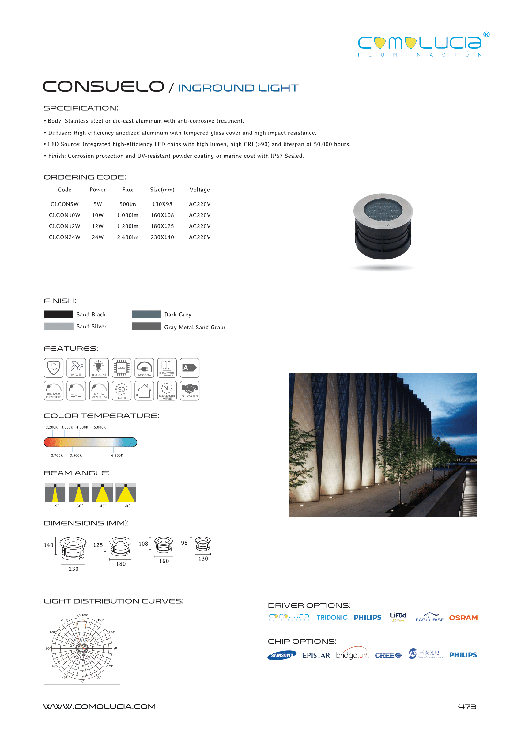 - LED Source: Integrated high-efficiency LED chips with high lumen, high CRI (>90) and lifespan of 50,000 hours.