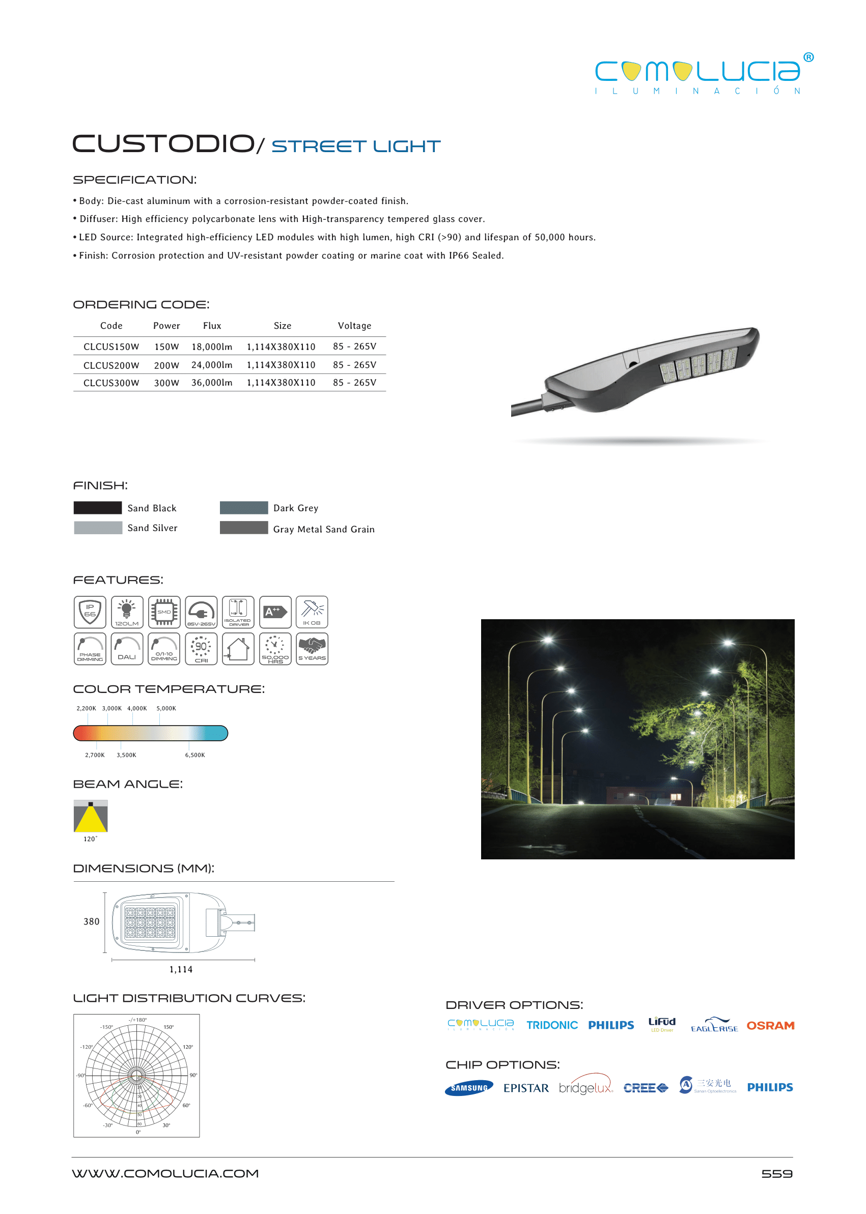 - LED Source: Integrated high-efficiency LED modules with high lumen, high CRI (>90) and lifespan of 50,000 hours.