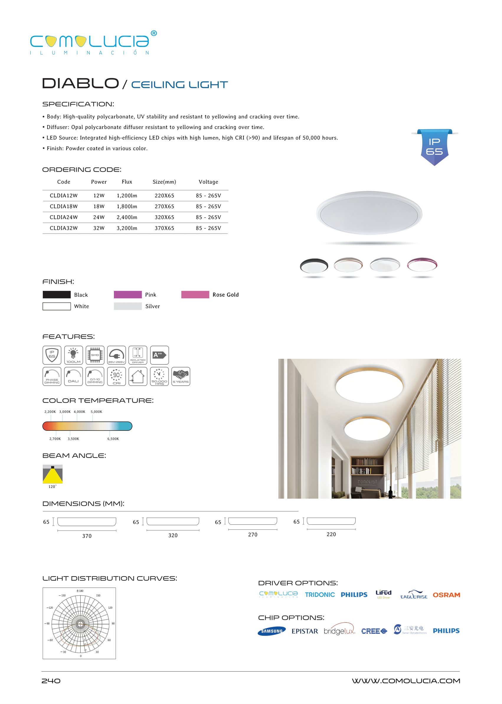 - Diffuser: Opal polycarbonate diffuser resistant to yellowing and cracking over time.