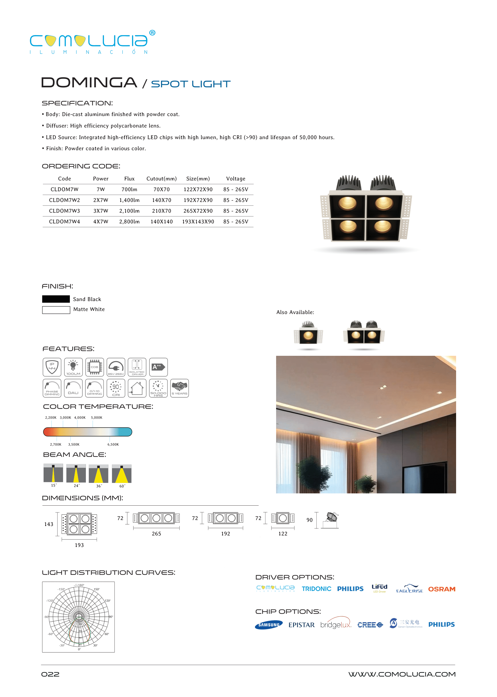 - LED Source: Integrated high-efficiency LED chips with high lumen, high CRI (>90) and lifespan of 50,000 hours.