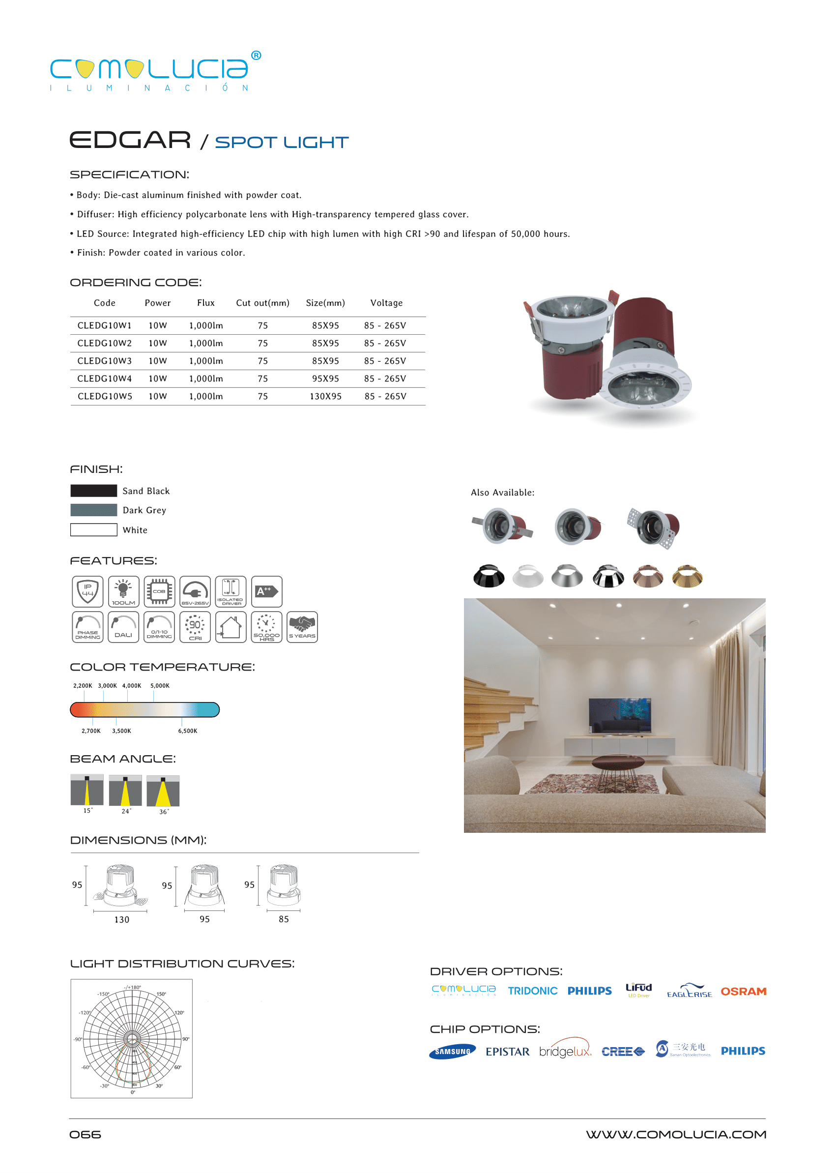 - LED Source: Integrated high-efficiency LED chip with high lumen with high CRI >90 and lifespan of 50,000 hours.
