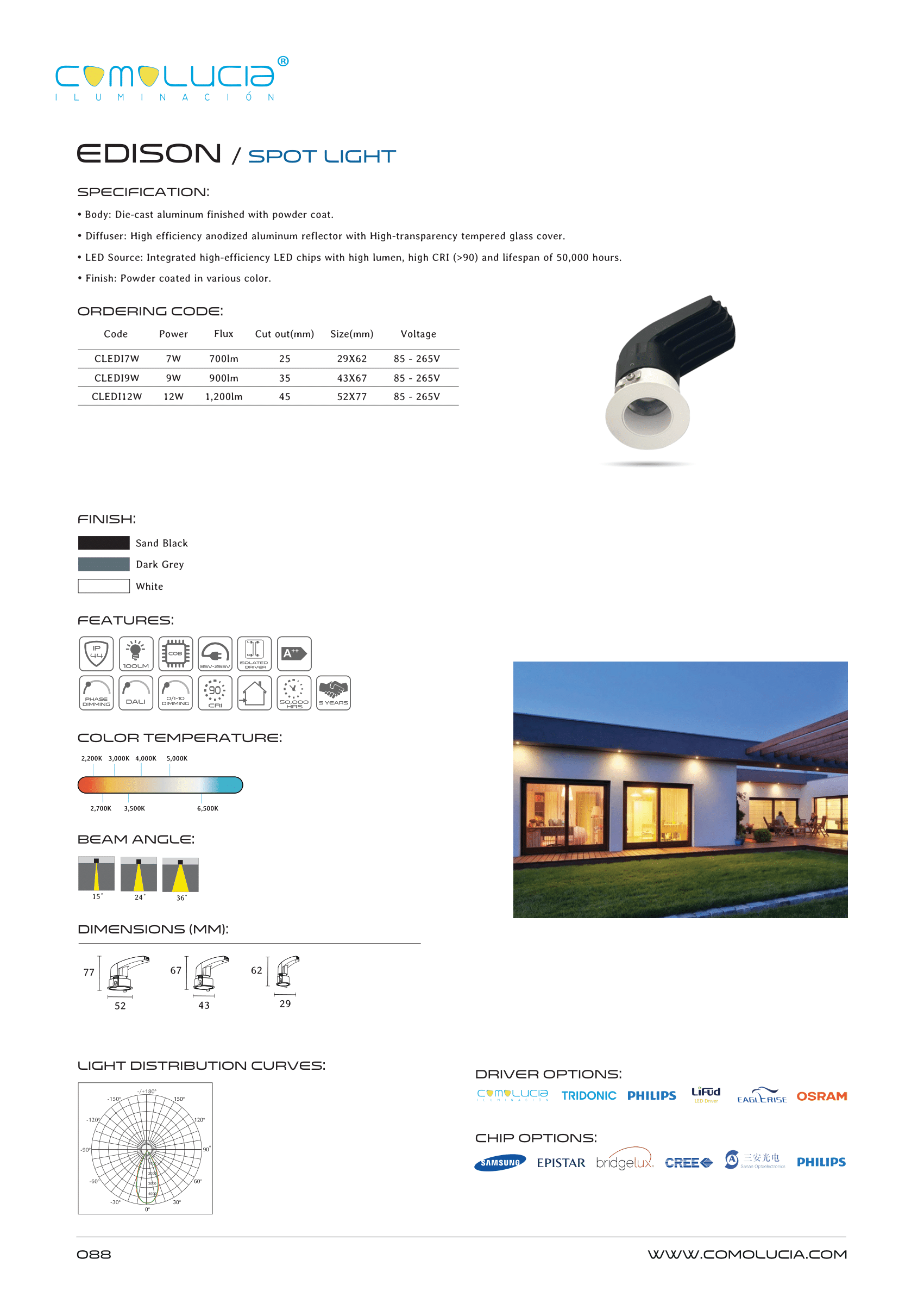 - LED Source: Integrated high-efficiency LED chips with high lumen, high CRI (>90) and lifespan of 50,000 hours.