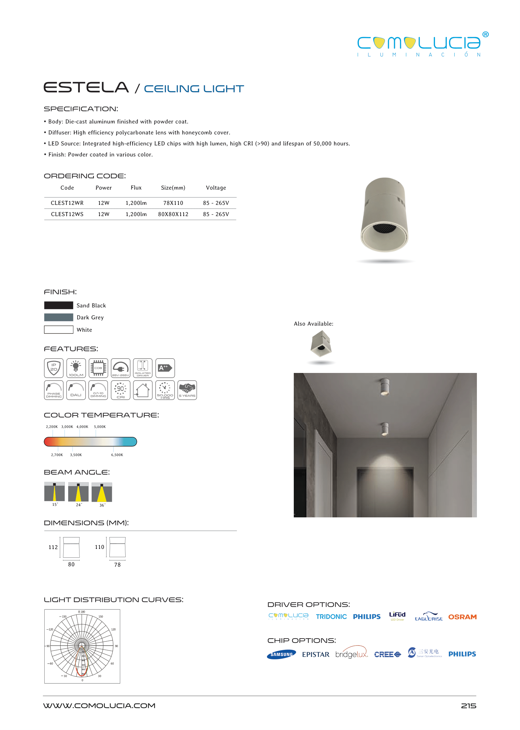 - LED Source: Integrated high-efficiency LED chips with high lumen, high CRI (>90) and lifespan of 50,000 hours.