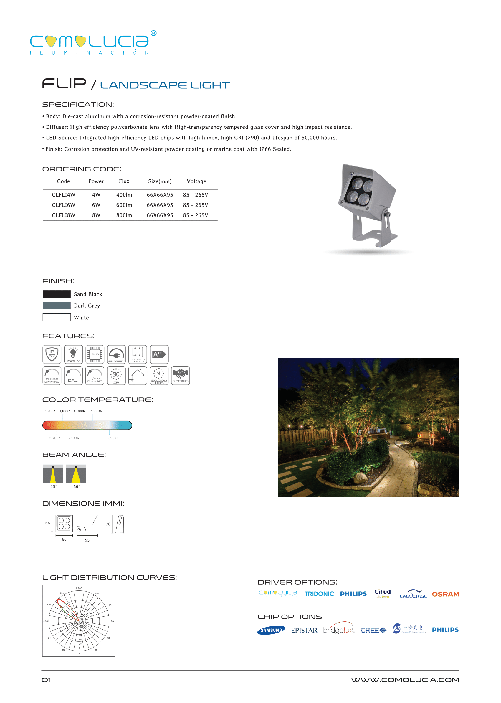 - LED Source: Integrated high-efficiency LED chips with high lumen, high CRI (>90) and lifespan of 50,000 hours.