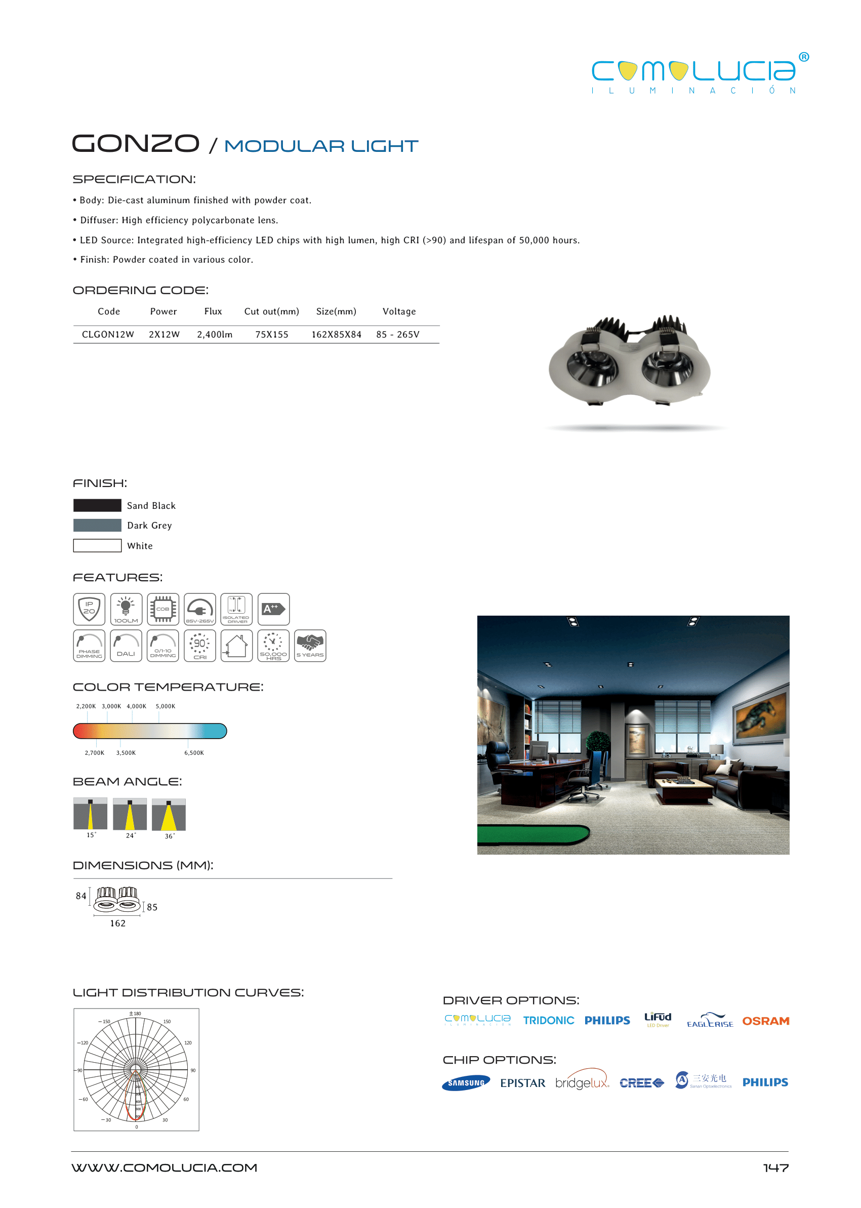- LED Source: Integrated high-efficiency LED chips with high lumen, high CRI (>90) and lifespan of 50,000 hours.