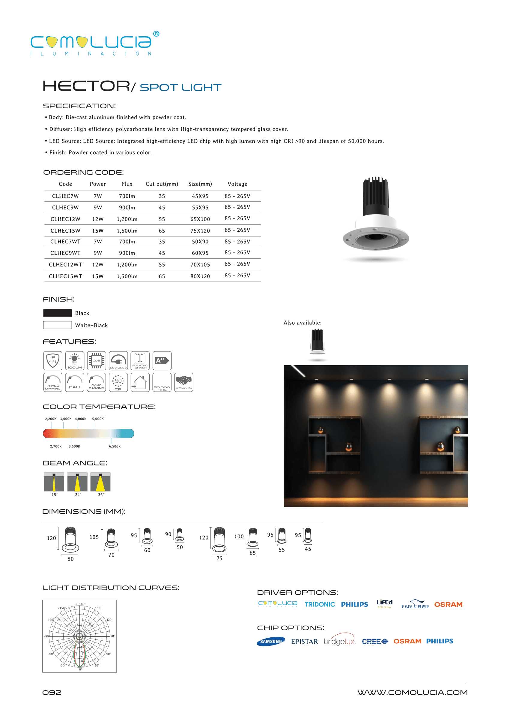 - LED Source: Integrated high-efficiency LED chip with high lumen with high CRI >90 and lifespan of 50,000 hours.