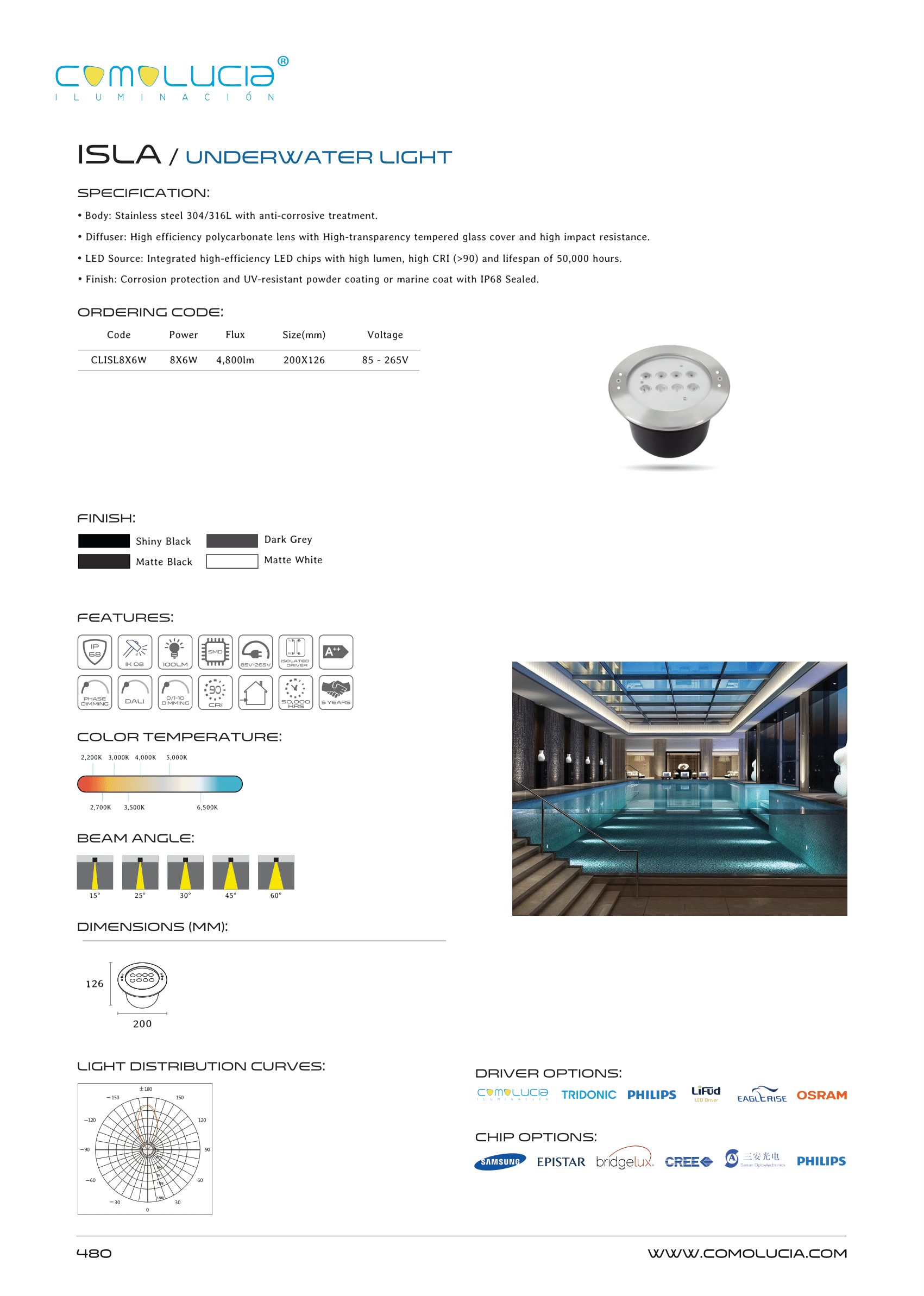 - Finish: Corrosion protection and UV-resistant powder coating or marine coat with IP68 Sealed.