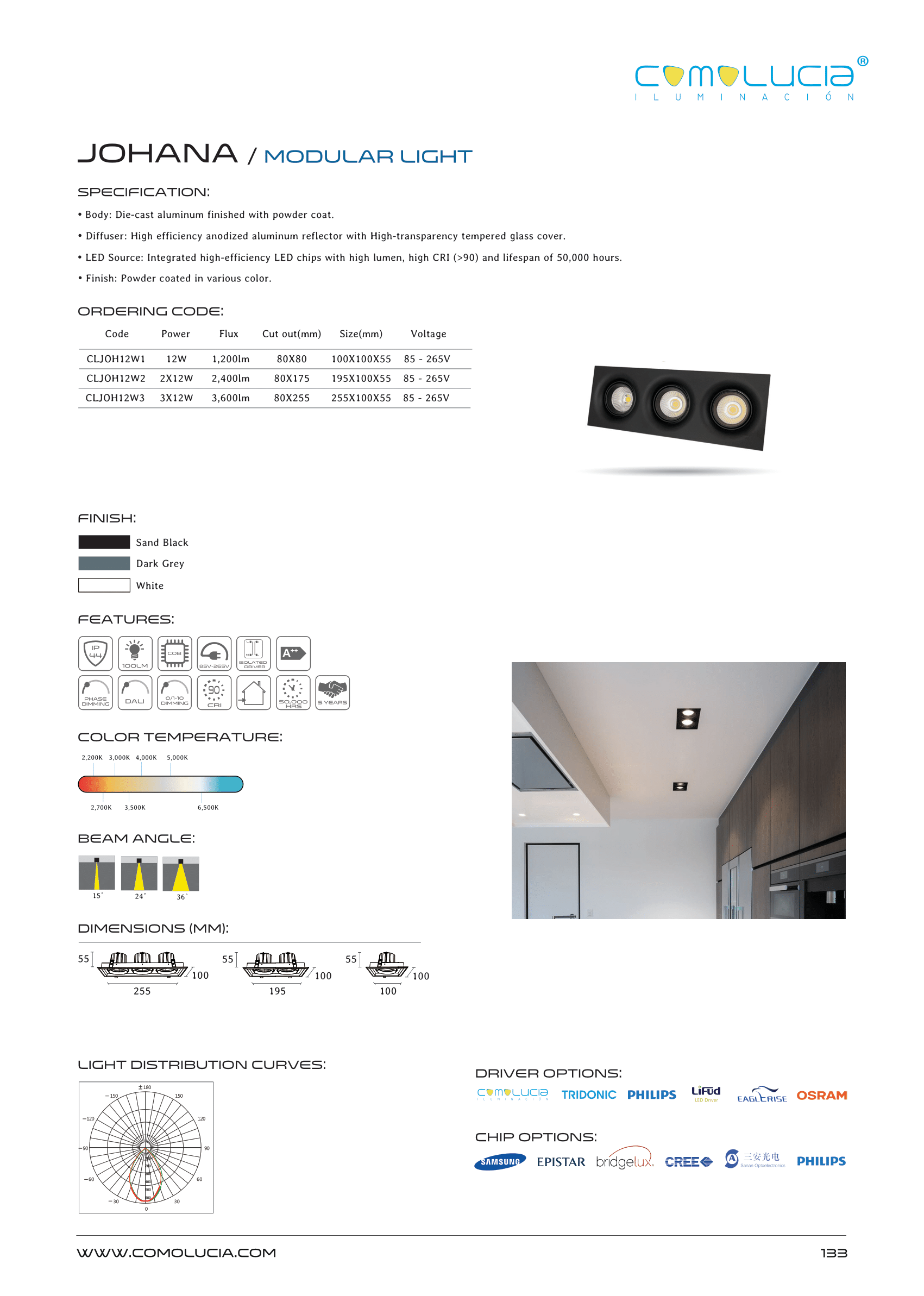- LED Source: Integrated high-efficiency LED chips with high lumen, high CRI (>90) and lifespan of 50,000 hours.