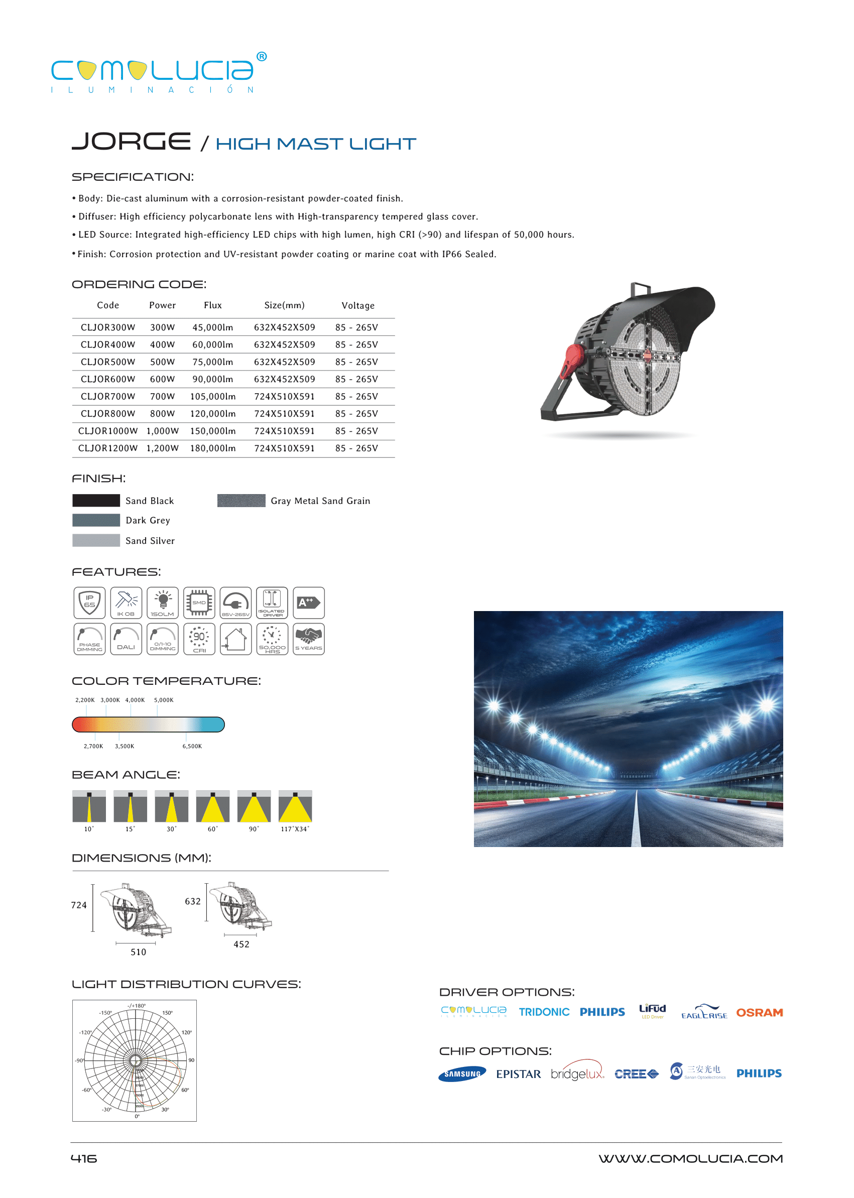 - Finish: Corrosion protection and UV-resistant powder coating or marine coat with IP66 Sealed.