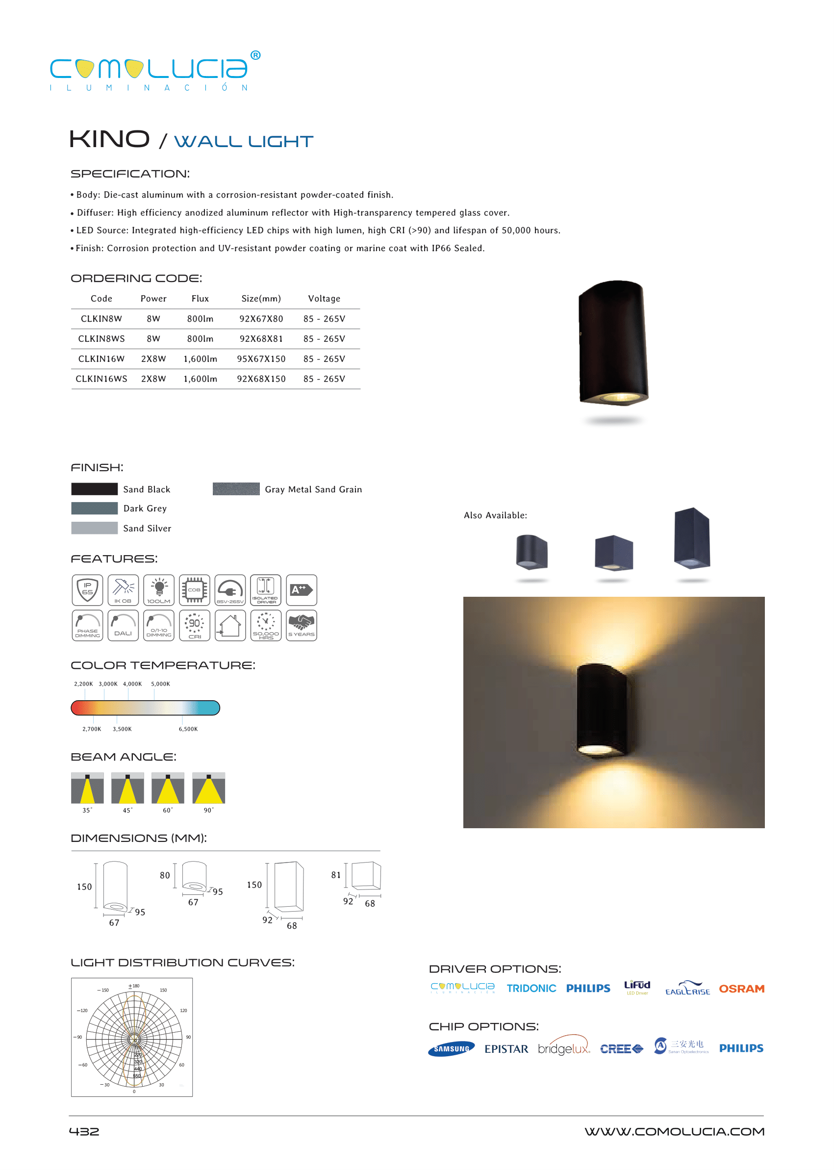 - LED Source: E27/MR16/GU10 – 220V Bulbs
