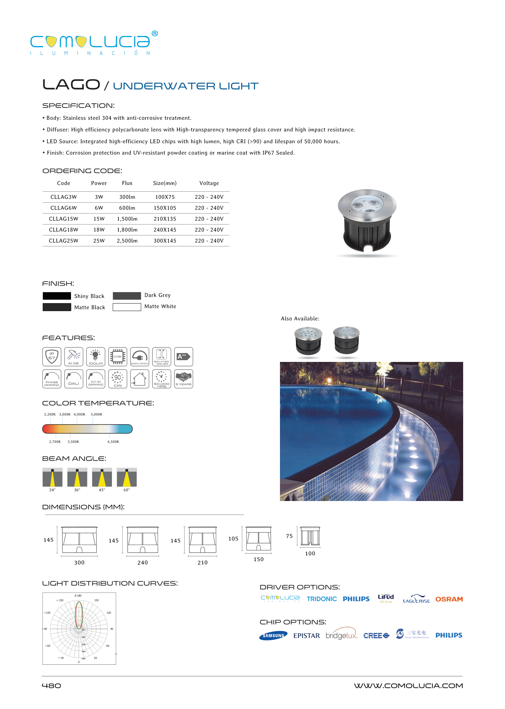 - Finish: Corrosion protection and UV-resistant powder coating or marine coat with IP67 Sealed.
