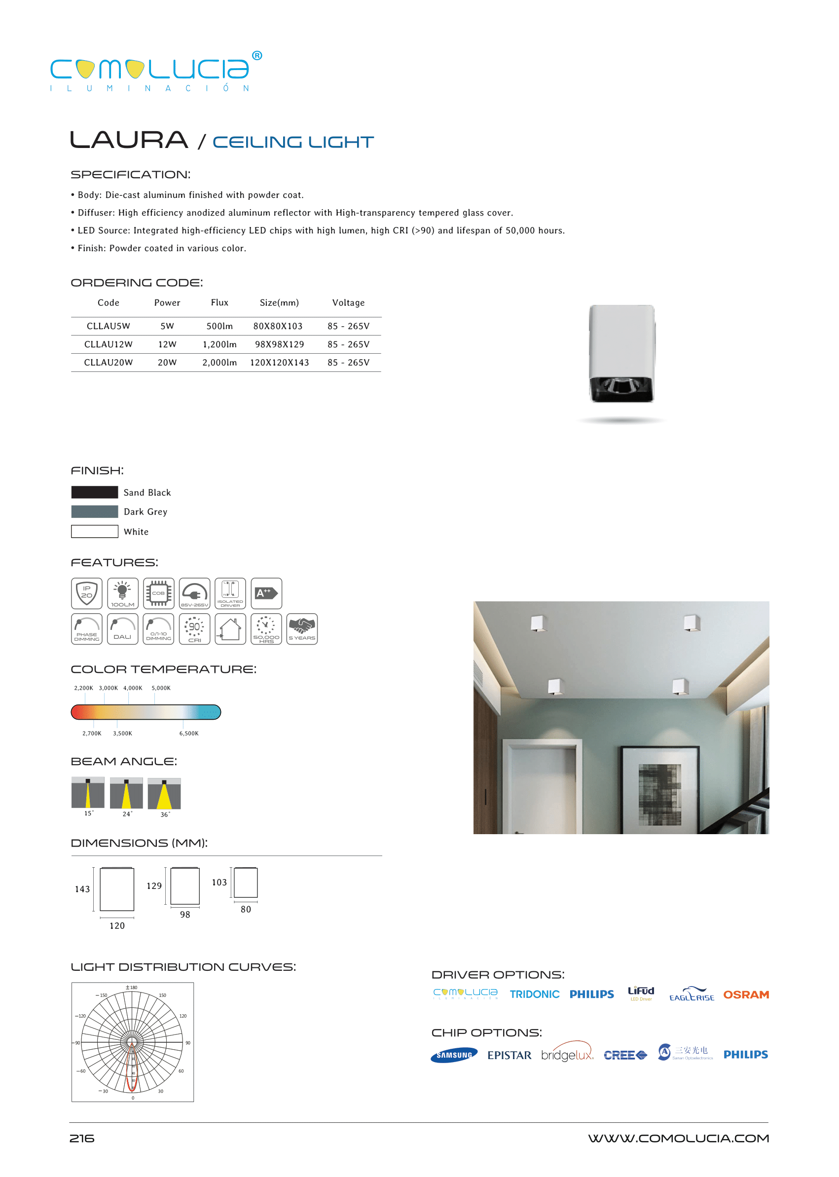 - LED Source: Integrated high-efficiency LED chips with high lumen, high CRI (>90) and lifespan of 50,000 hours.