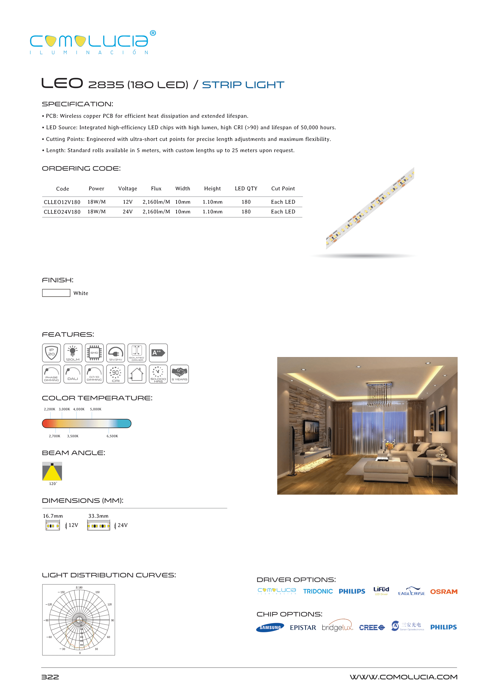 - LED Source: Integrated high-efficiency LED chips with high lumen, high CRI (>90) and lifespan of 50,000 hours.