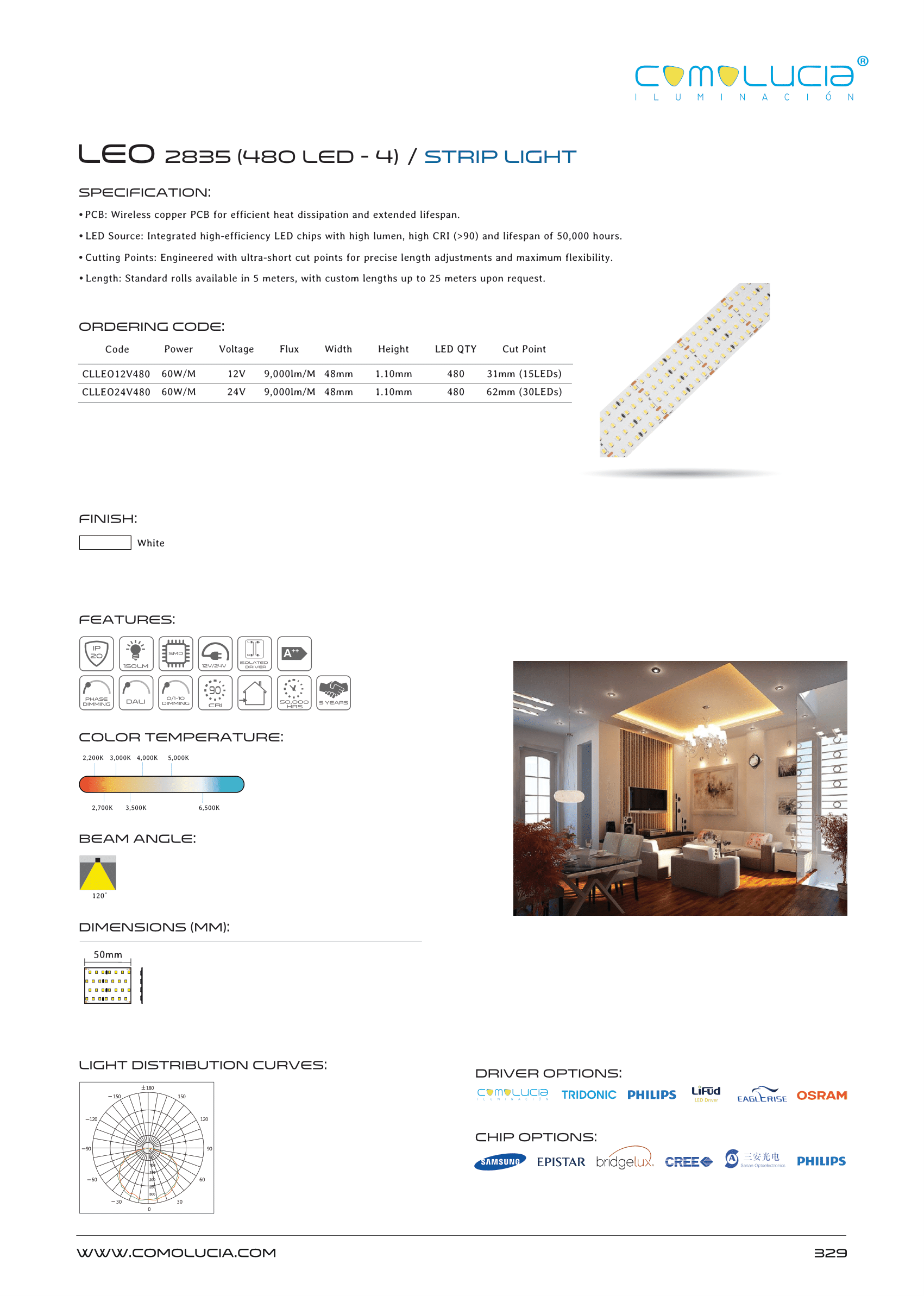 - LED Source: Integrated high-efficiency LED chips with high lumen, high CRI (>90) and lifespan of 50,000 hours.