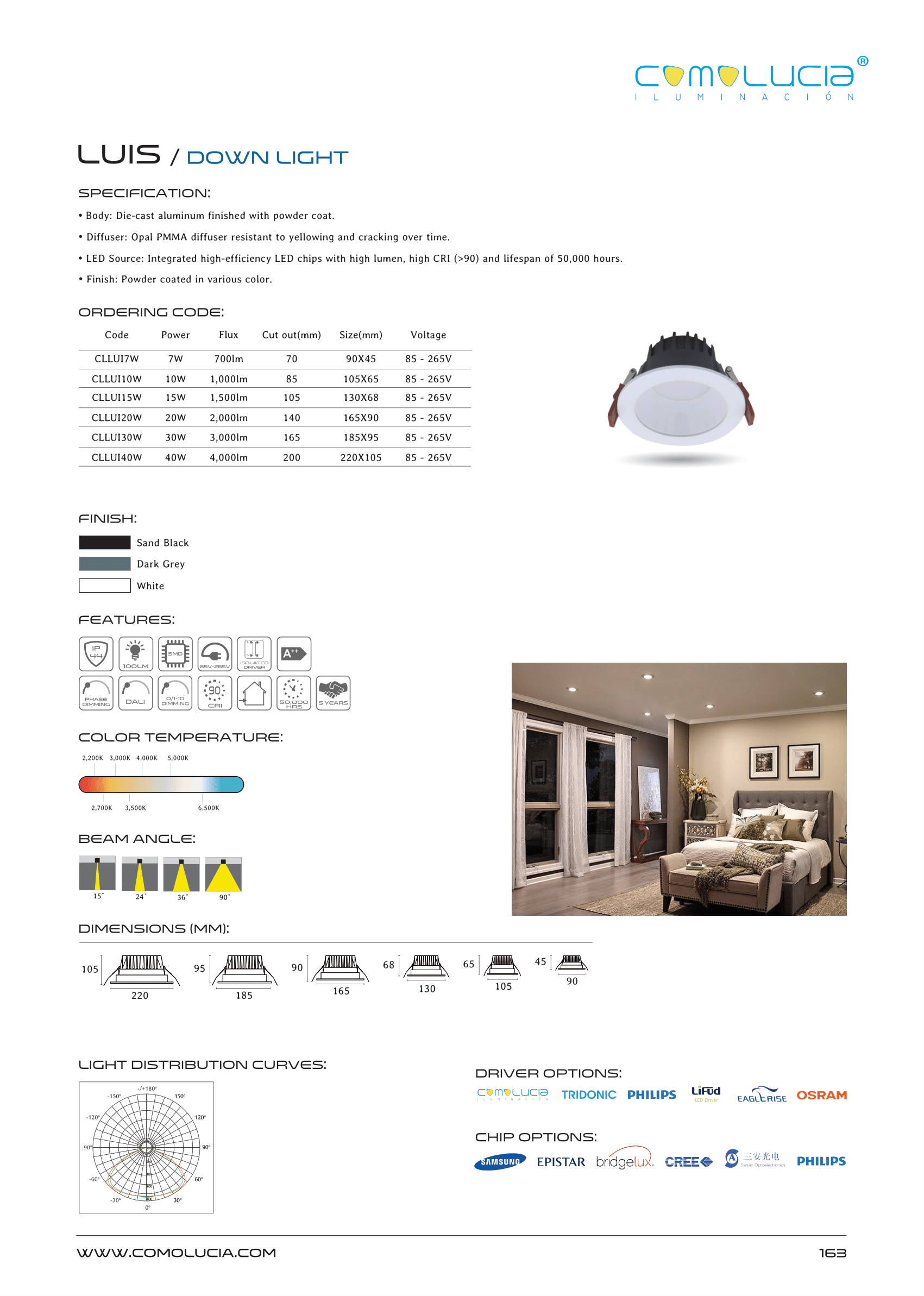 - LED Source: Integrated high-efficiency LED chips with high lumen, high CRI (>90) and lifespan of 50,000 hours.