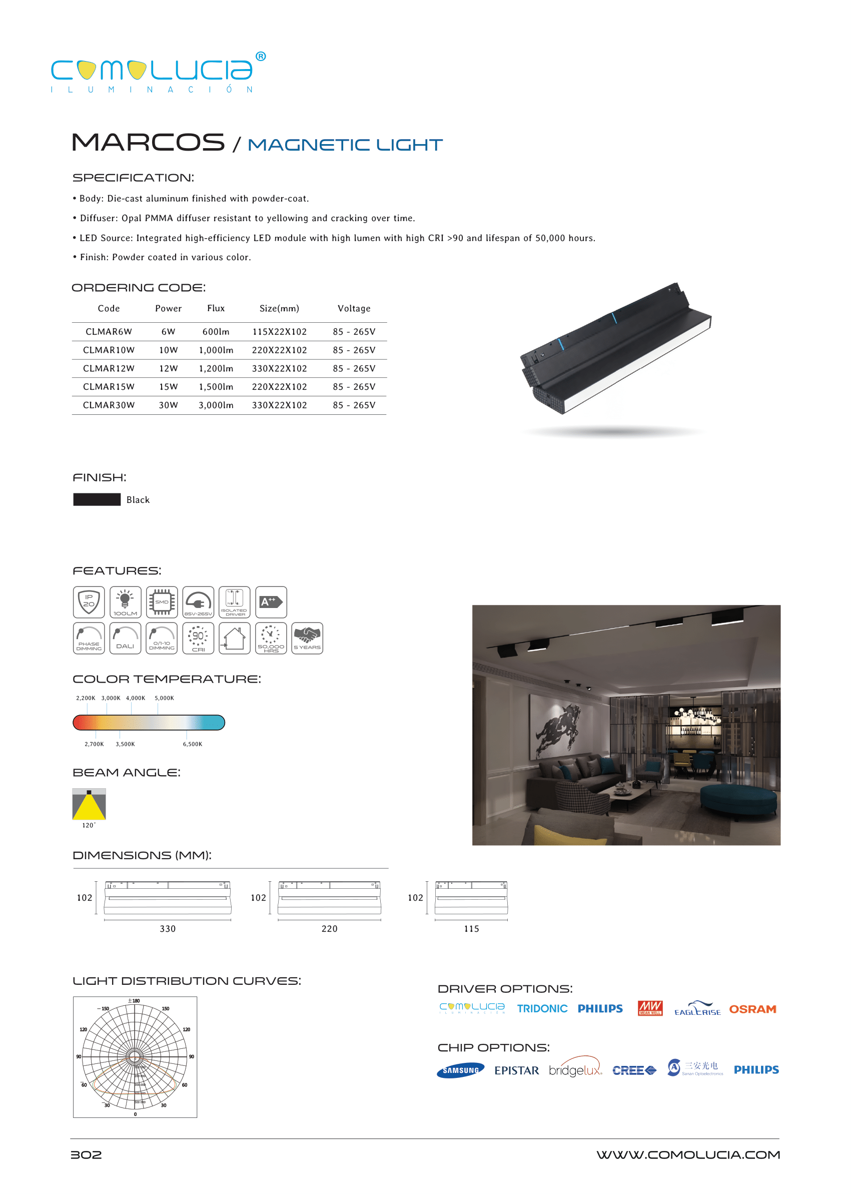 - LED Source: Integrated high-efficiency LED module with high lumen with high CRI >90 and lifespan of 50,000 hours.