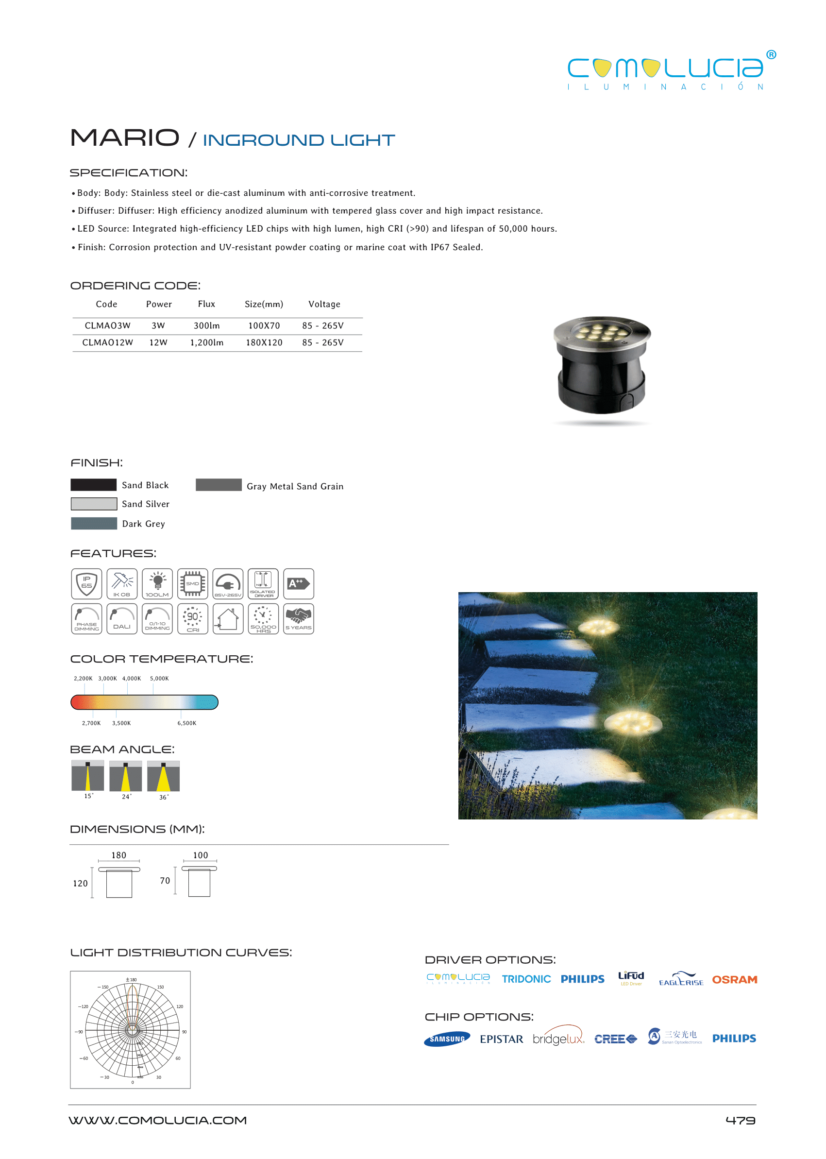 - Diffuser: High efficiency anodized aluminum with tempered glass cover and high impact resistance.
