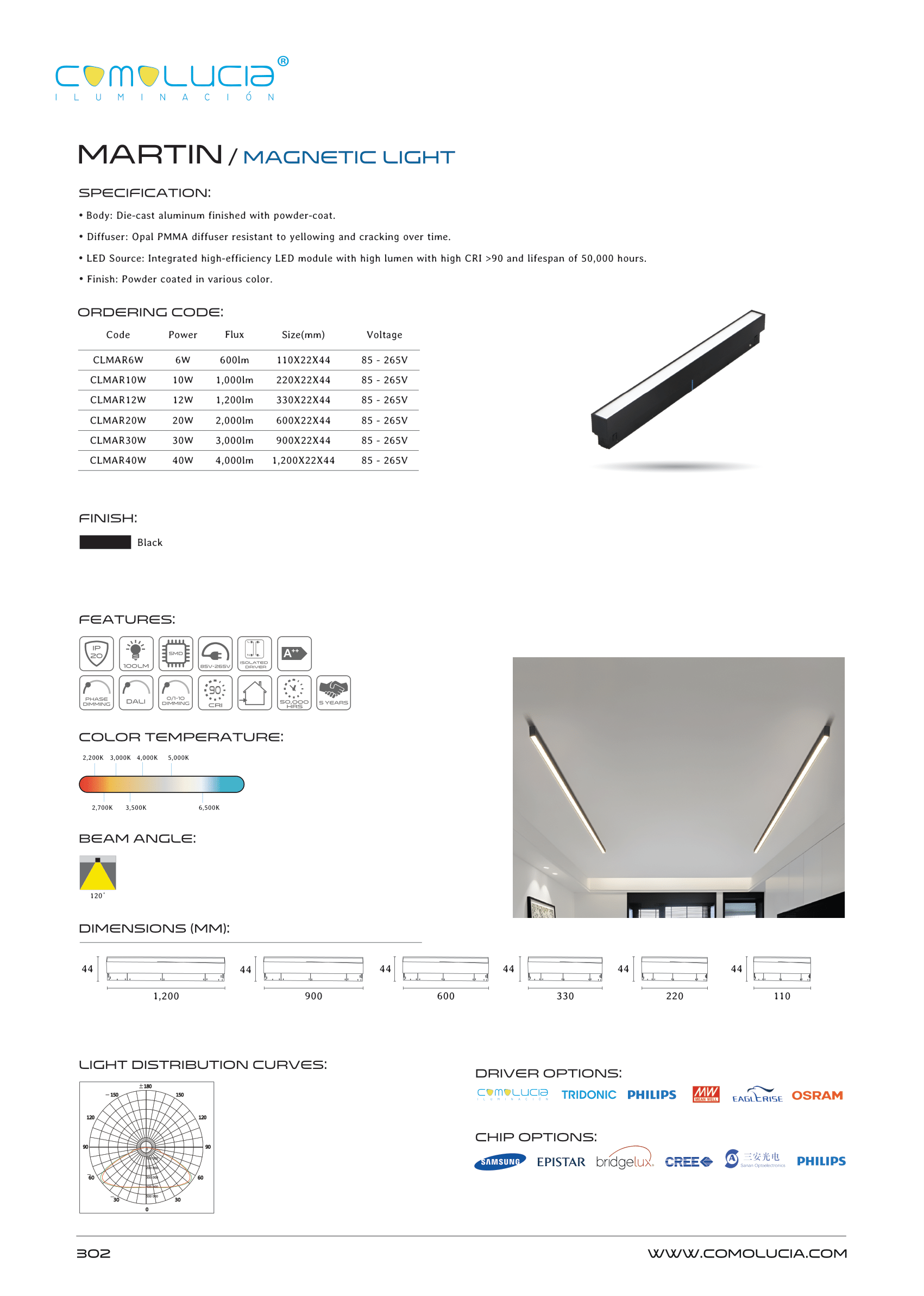 - LED Source: Integrated high-efficiency LED module with high lumen with high CRI >90 and lifespan of 50,000 hours.