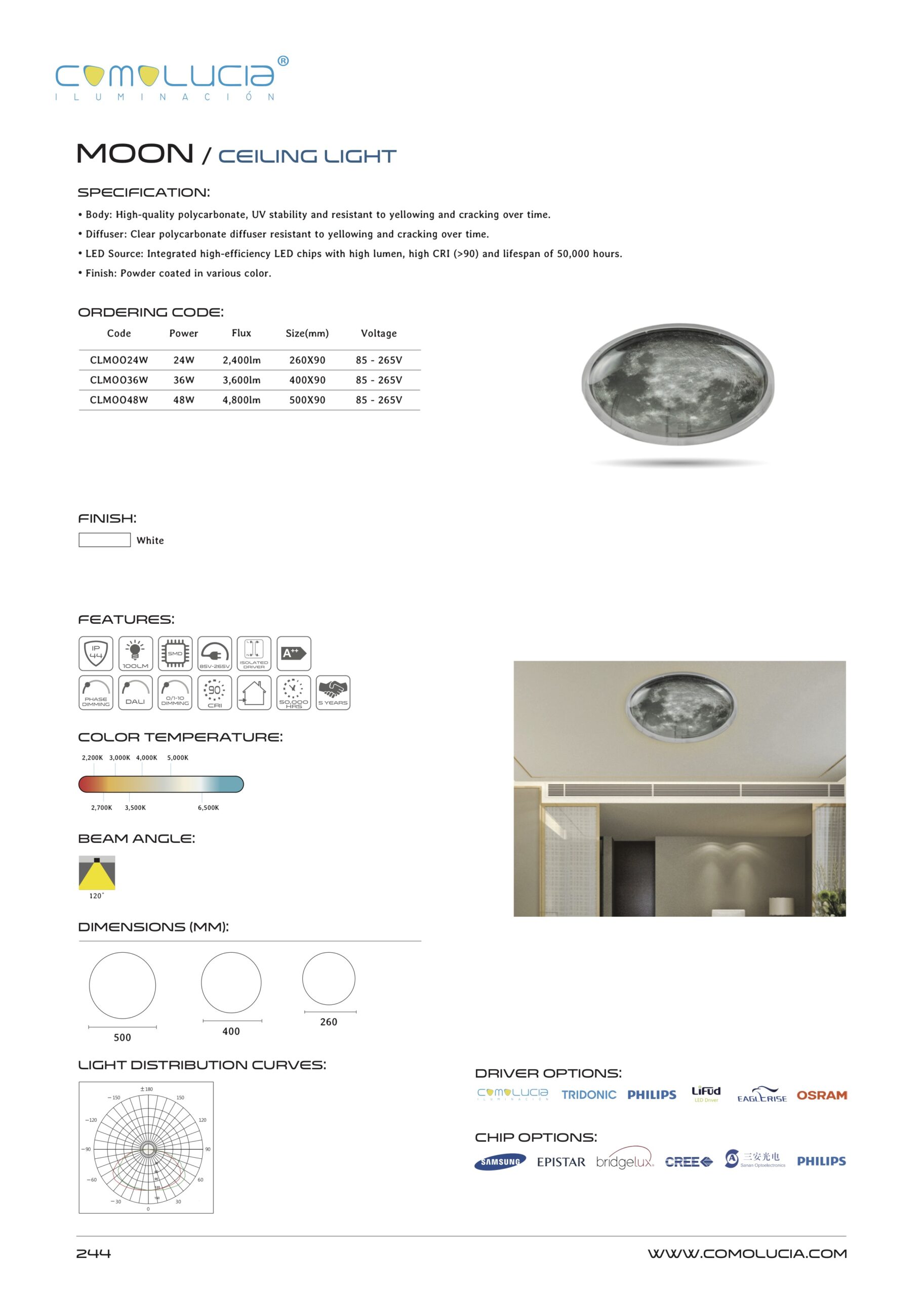 - LED Source: Integrated high-efficiency LED chips with high lumen, high CRI (>90) and lifespan of 50,000 hours.