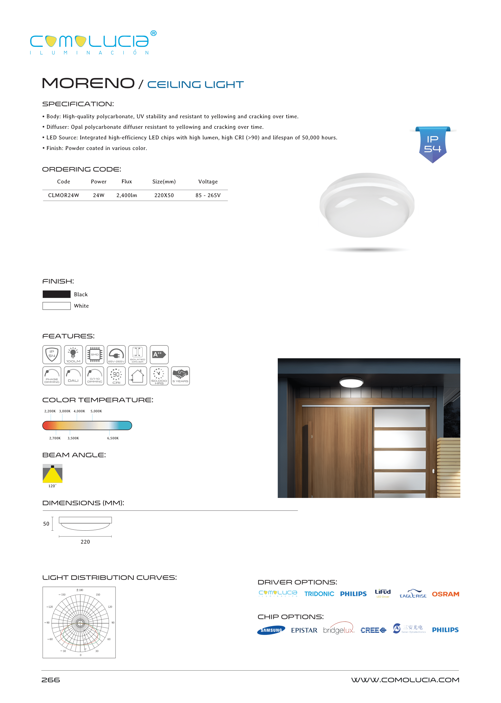 - LED Source: Integrated high-efficiency LED chips with high lumen, high CRI (>90) and lifespan of 50,000 hours.