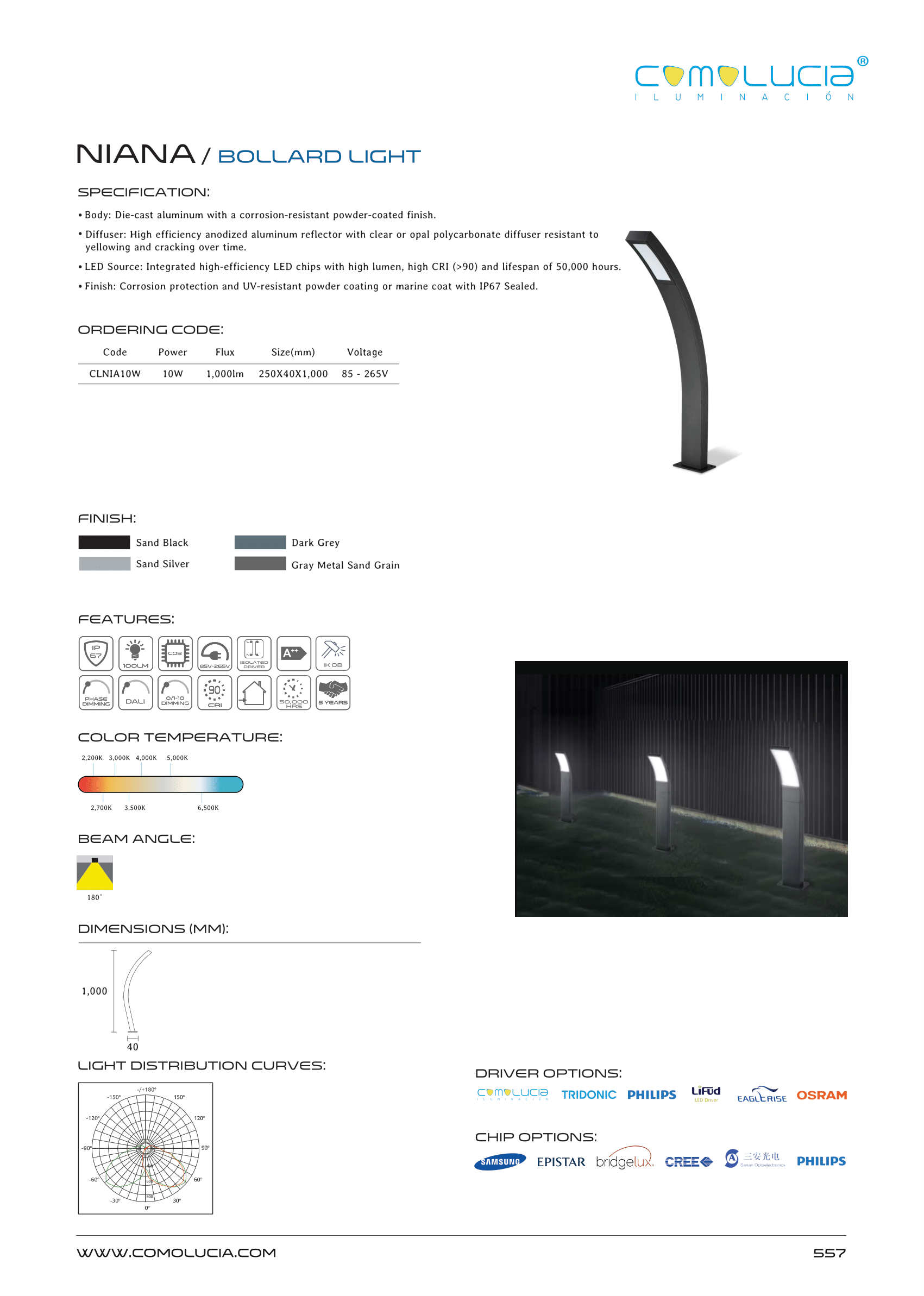 - LED Source: Integrated high-efficiency LED chips with high lumen, high CRI (>90) and lifespan of 50,000 hours.