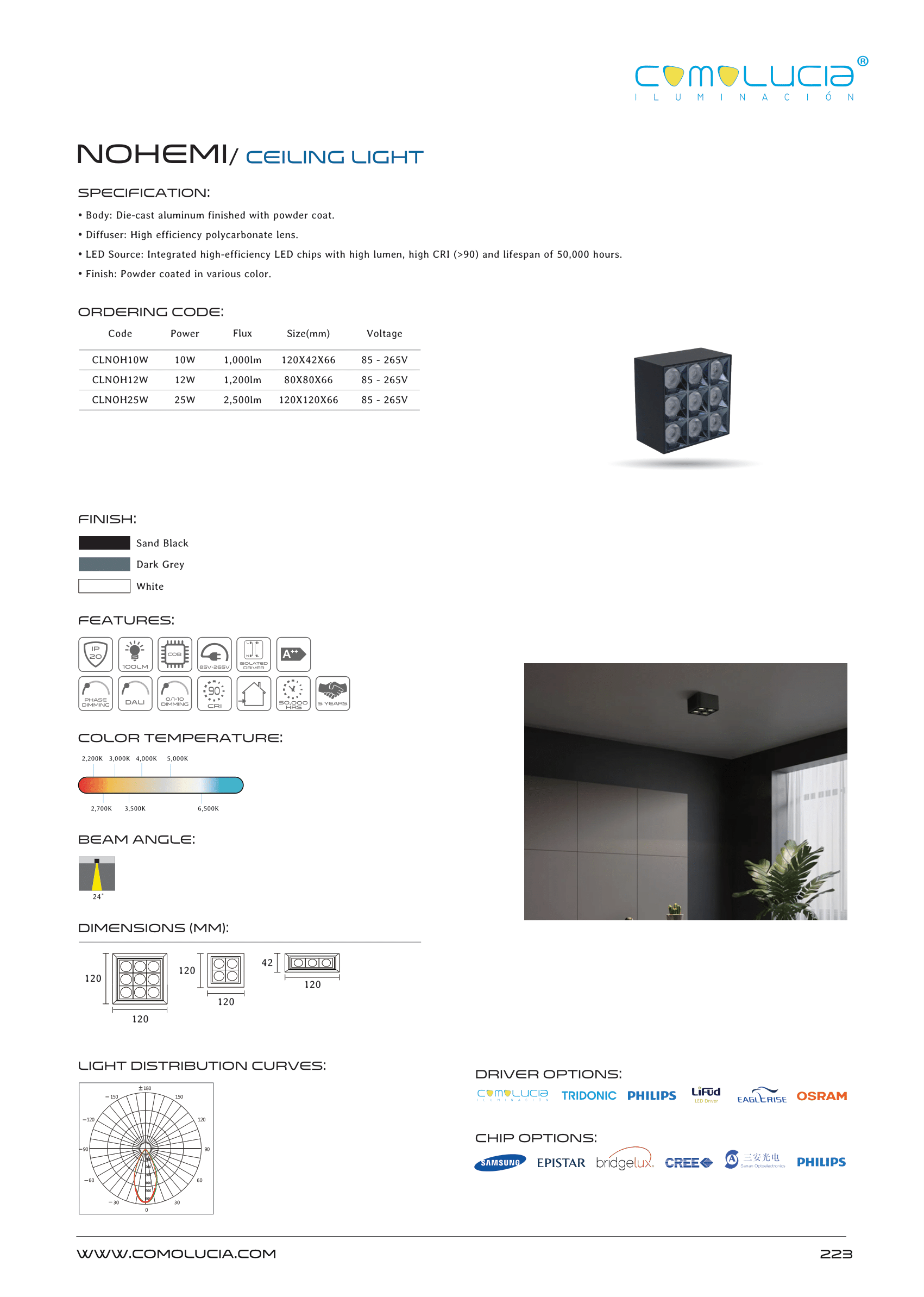 - LED Source: Integrated high-efficiency LED chips with high lumen, high CRI (>90) and lifespan of 50,000 hours.