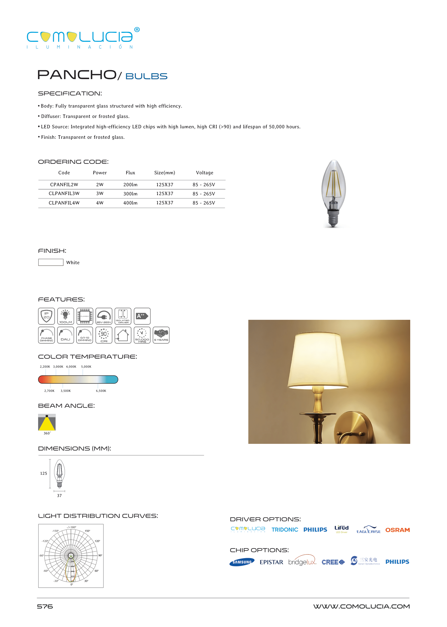 - LED Source: Integrated high-efficiency LED chips with high lumen, high CRI (>90) and lifespan of 50,000 hours.